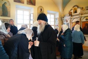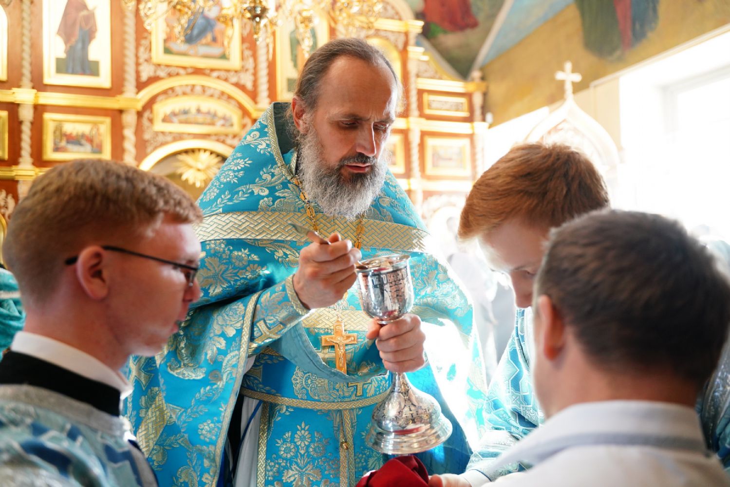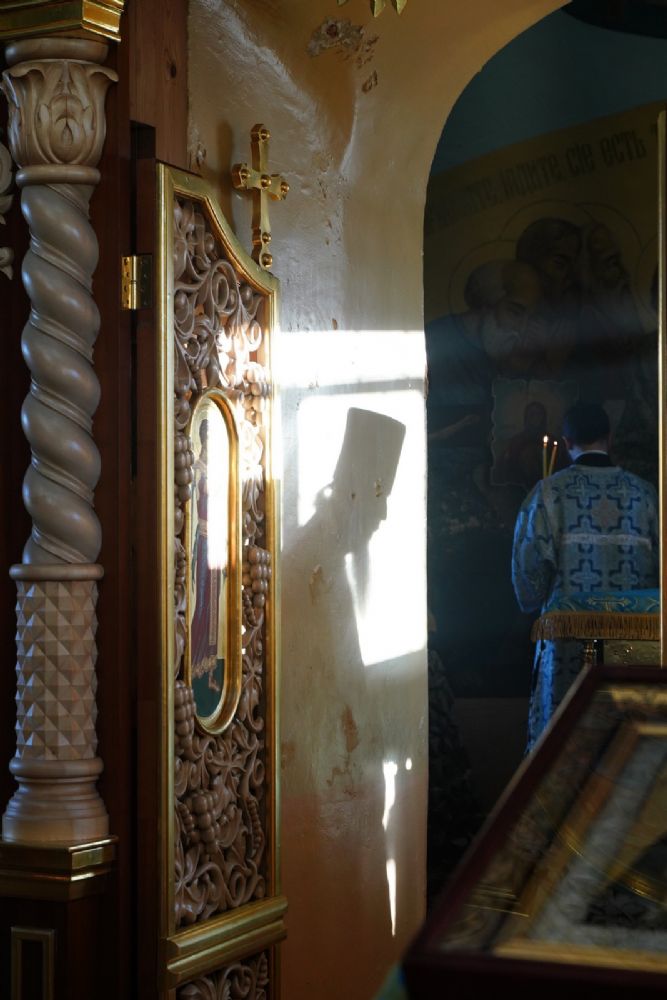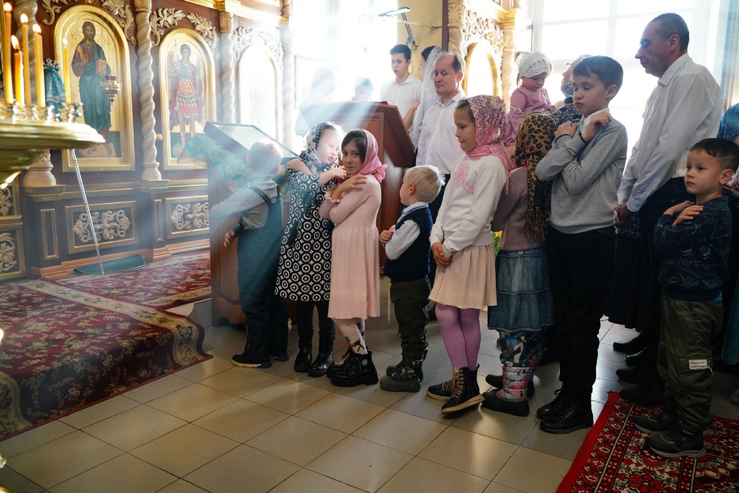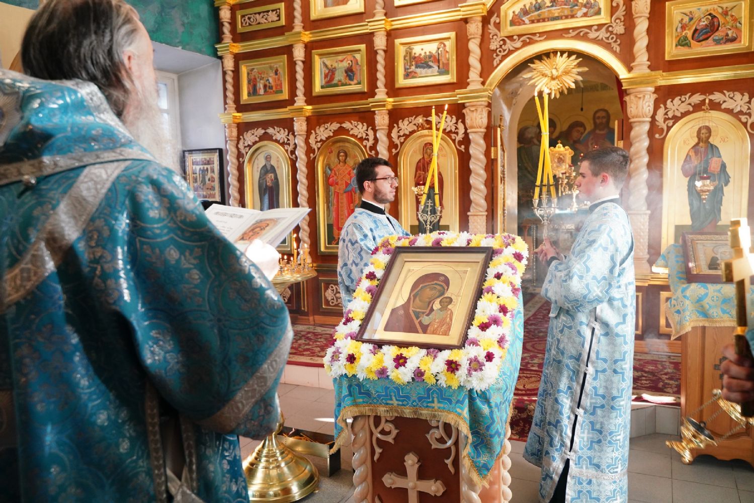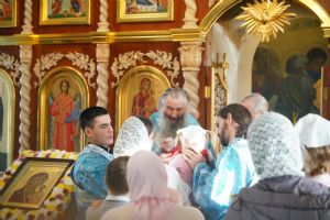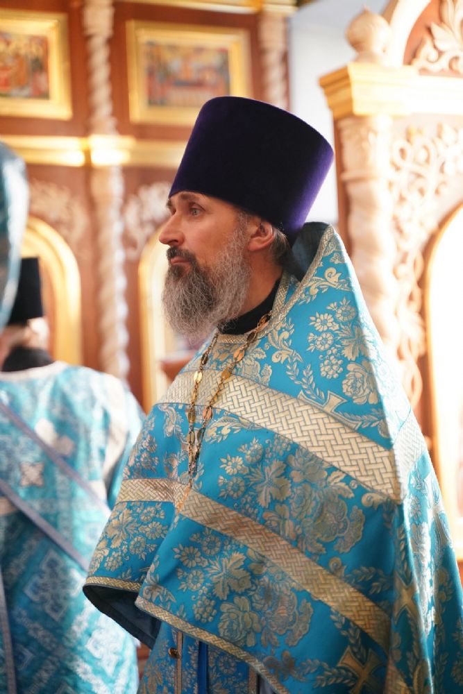 Архипастырю сослужили настоятель храма иерей Александр Коваль и протодиакон Михаил Козловский. Песнопения исполнял хор храма.