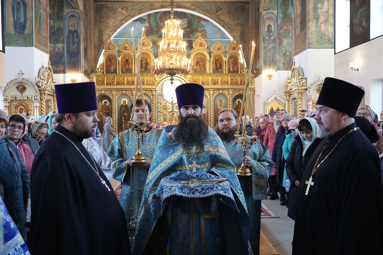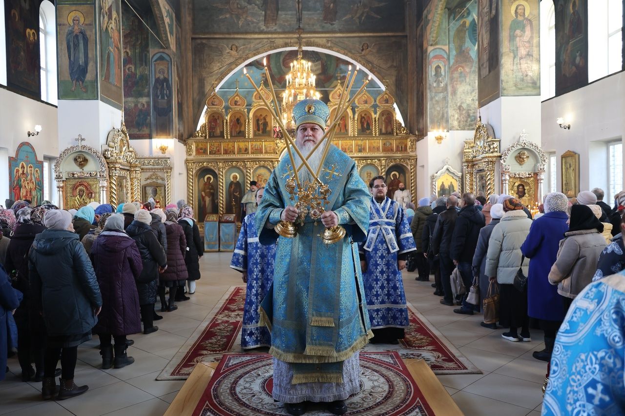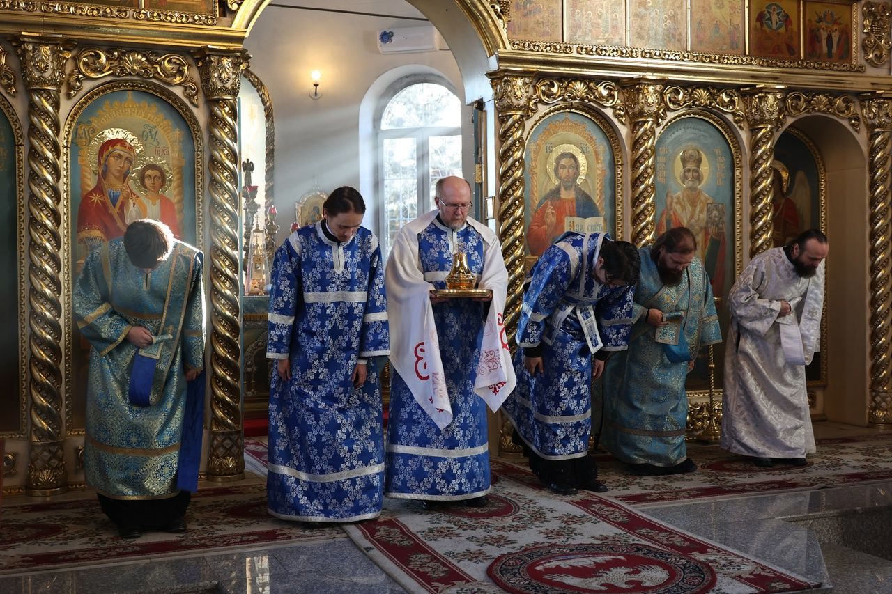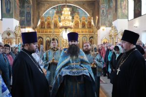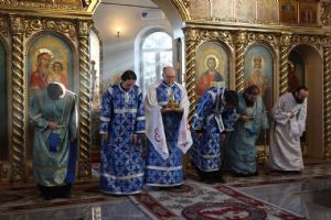 Его Преосвященству сослужили клирики собора, песнопения исполнял архиерейский хор.