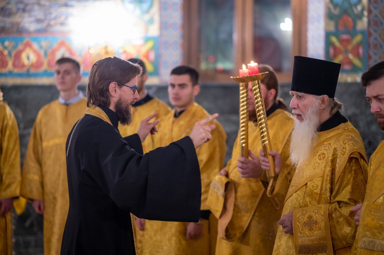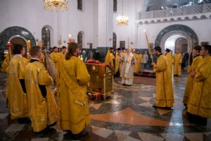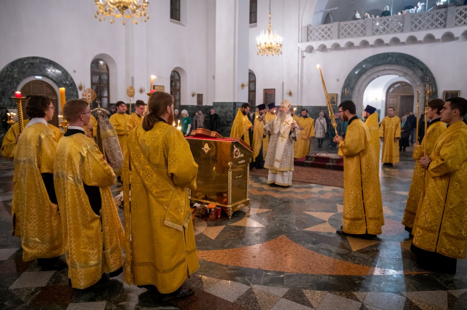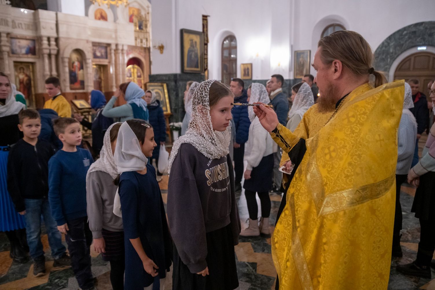 Его Высокопреосвященству сослужили ключарь кафедрального собора протоиерей Сергий Поглазов, клирики собора иереи Никифор Захаров, Евгений Самойлов, Александр Староверов и Иоанн Милютин, диаконы Андрей Дружинин и Артемий Бобоч, а также протодиакон Михаил Козловский. Песнопения антифонно исполняли старший и младший составы детско-юношеского хора «Благовест» под управлением регентов Татьяны Черновой и Софии Андреевой.