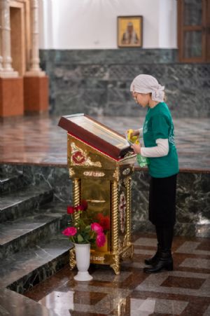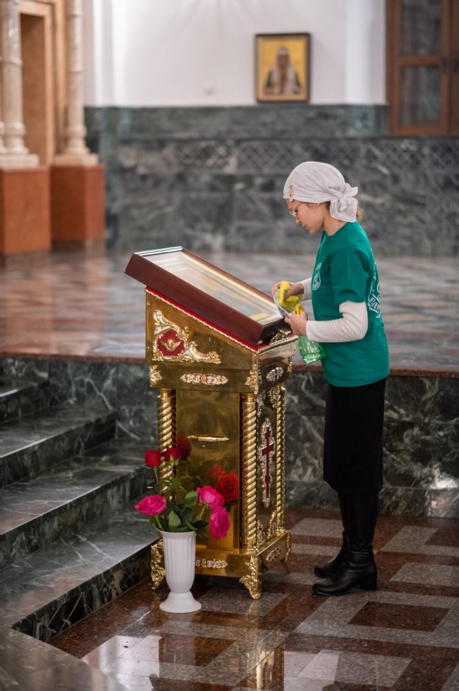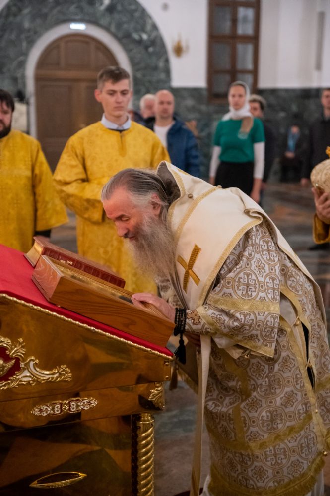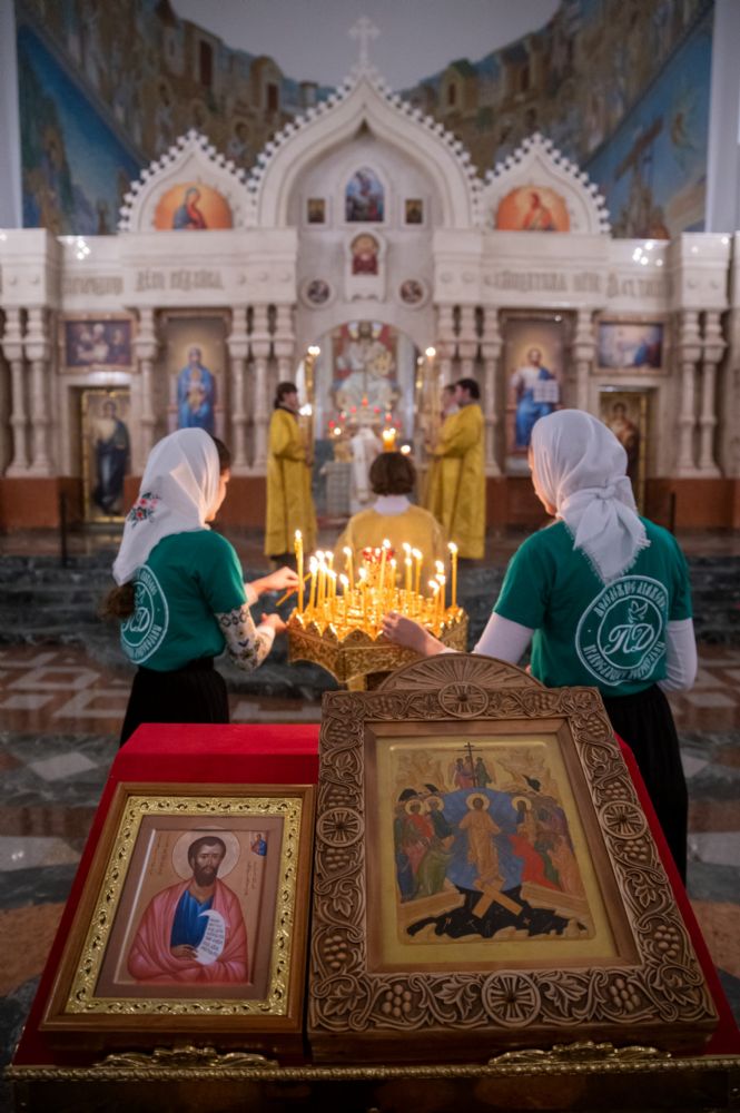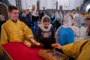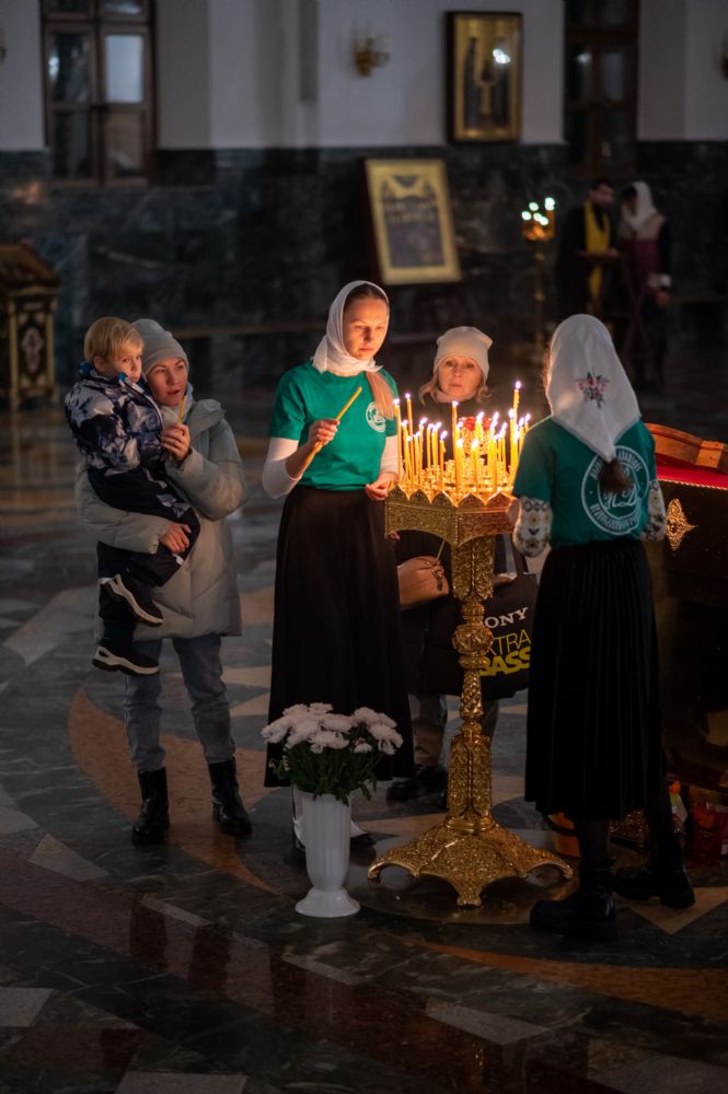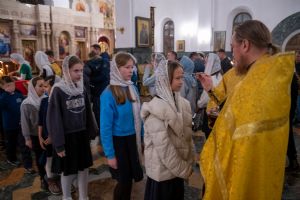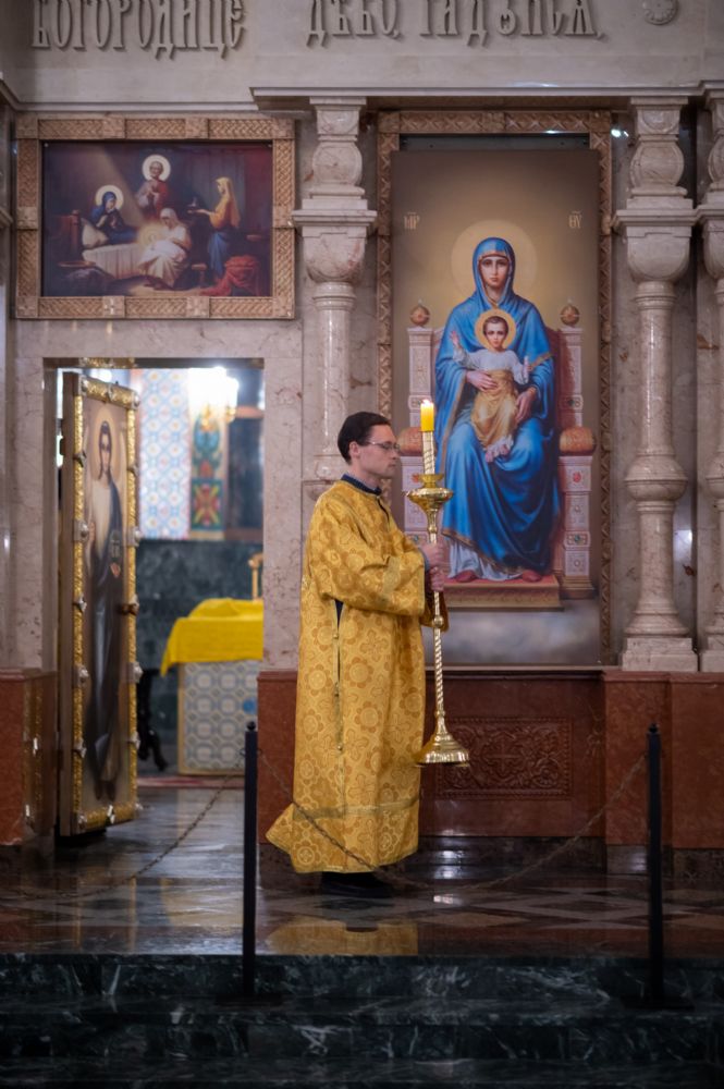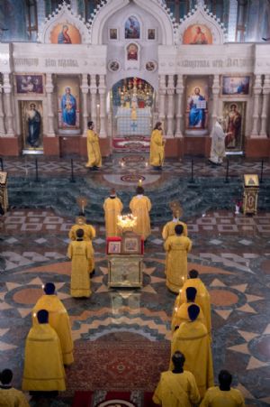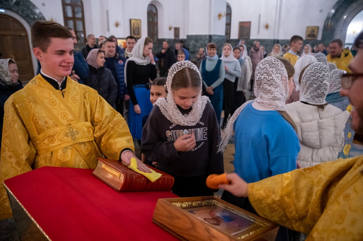 Его Высокопреосвященству сослужили ключарь кафедрального собора протоиерей Сергий Поглазов, клирики собора иереи Никифор Захаров, Евгений Самойлов, Александр Староверов и Иоанн Милютин, диаконы Андрей Дружинин и Артемий Бобоч, а также протодиакон Михаил Козловский. Песнопения антифонно исполняли старший и младший составы детско-юношеского хора «Благовест» под управлением регентов Татьяны Черновой и Софии Андреевой.