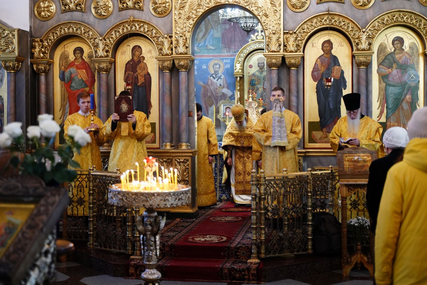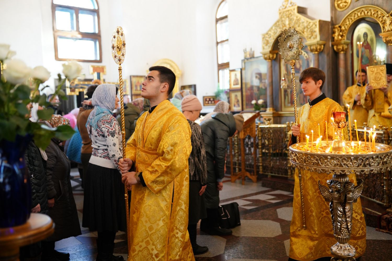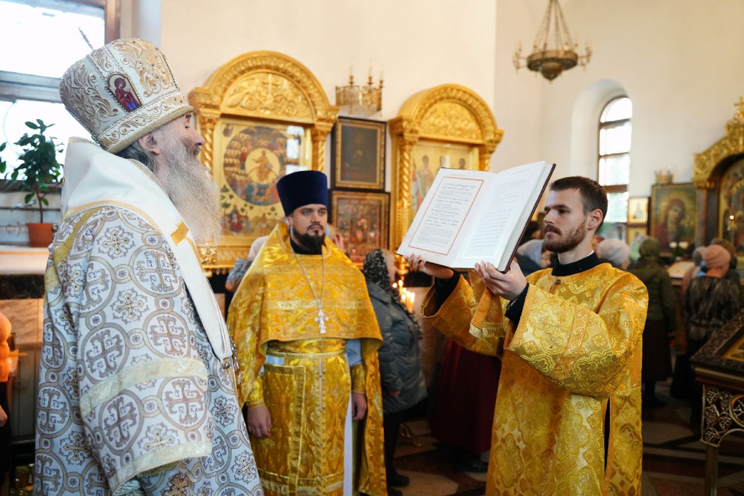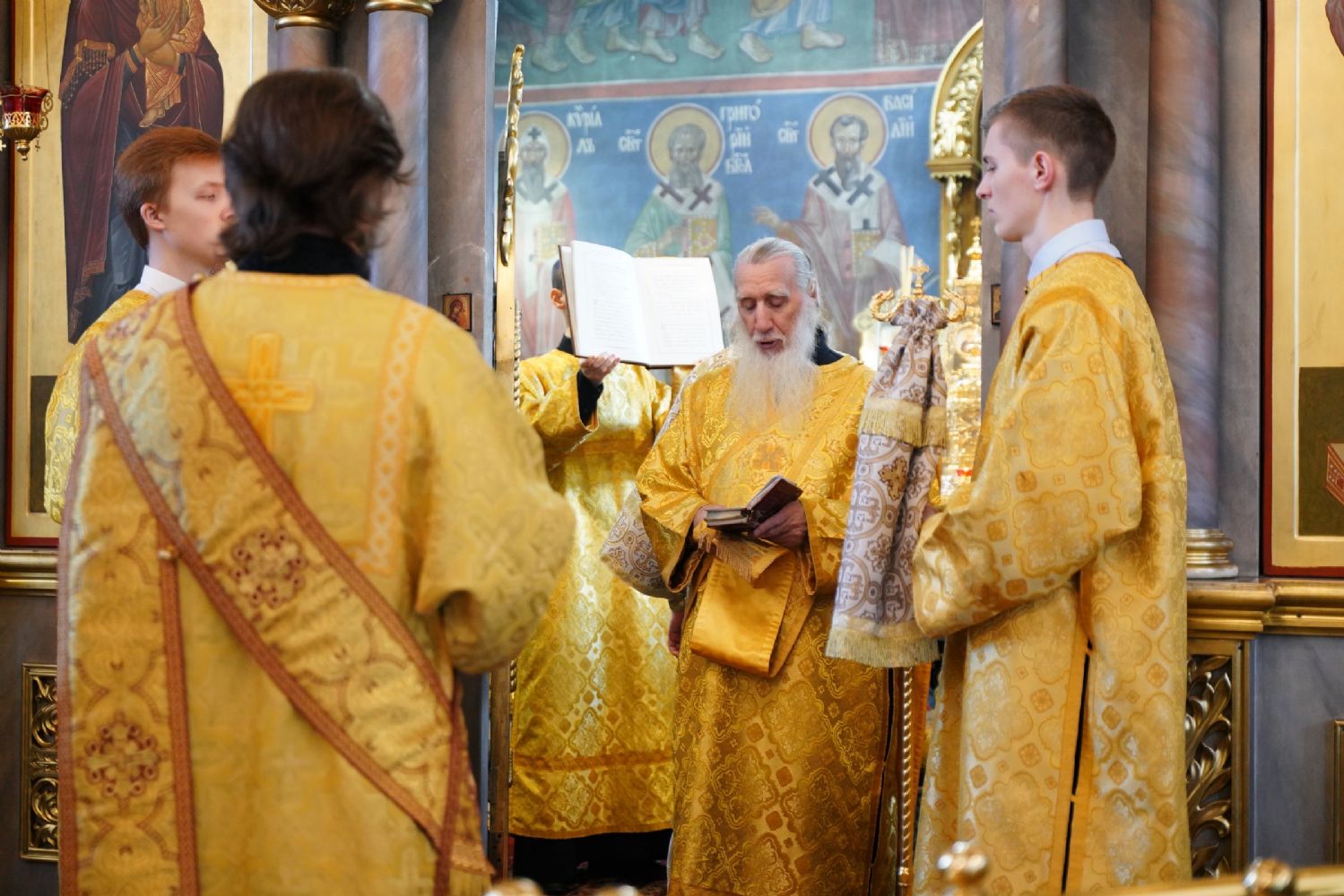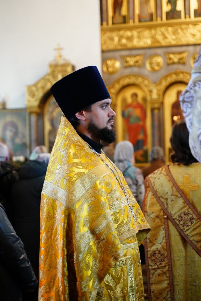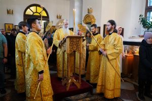 Архипастырю сослужили настоятель храма протоиерей Сергий Филонов, клирики храма иерей Никита Иванов и диакон Александр Мельников, а также протодиакон Михаил Козловский. Песнопения исполнял хор храма.