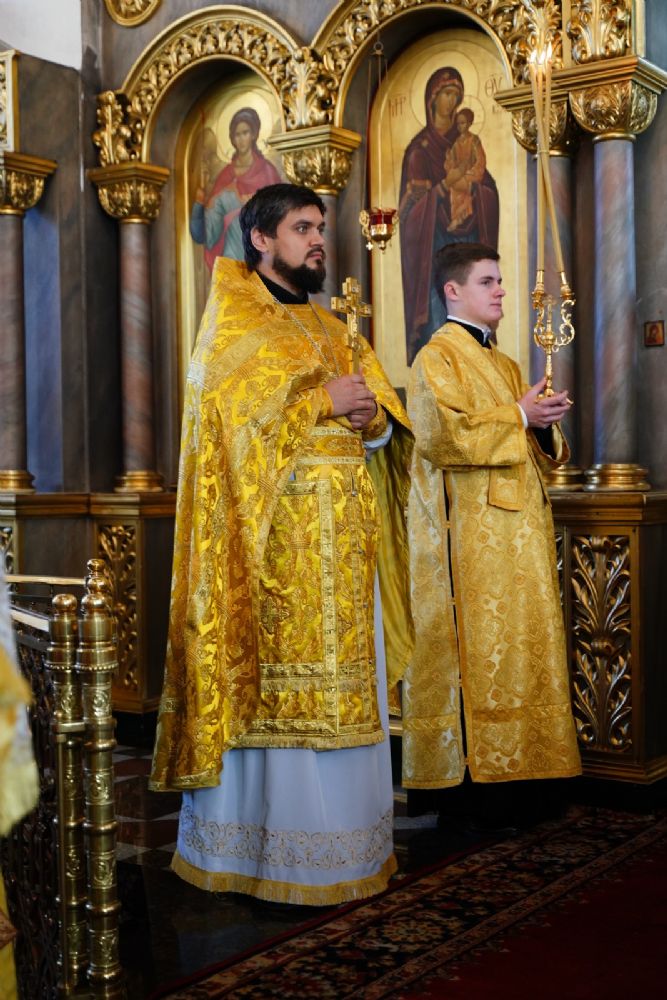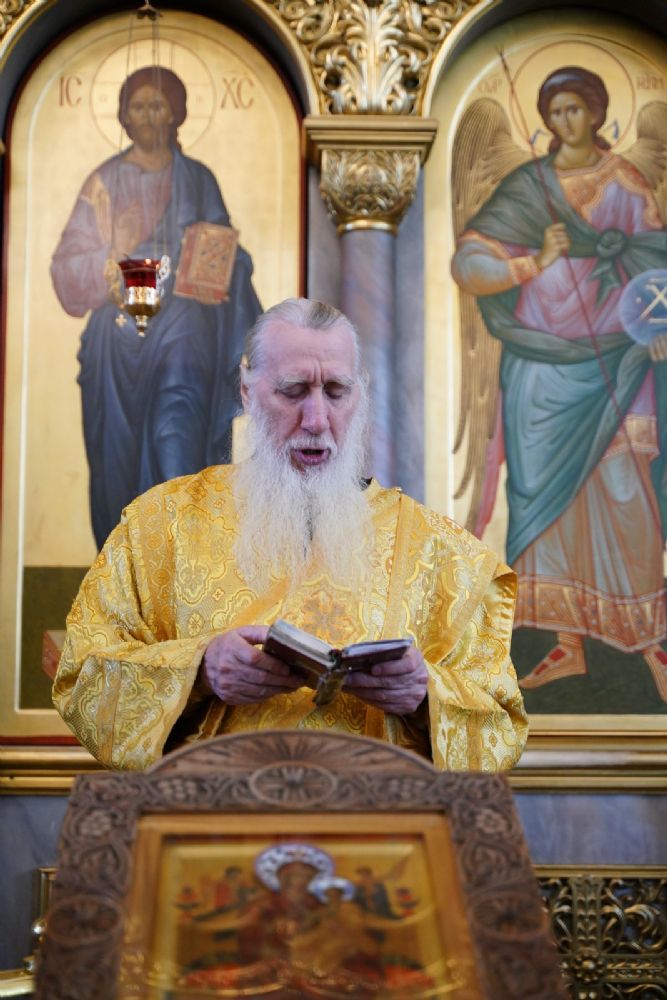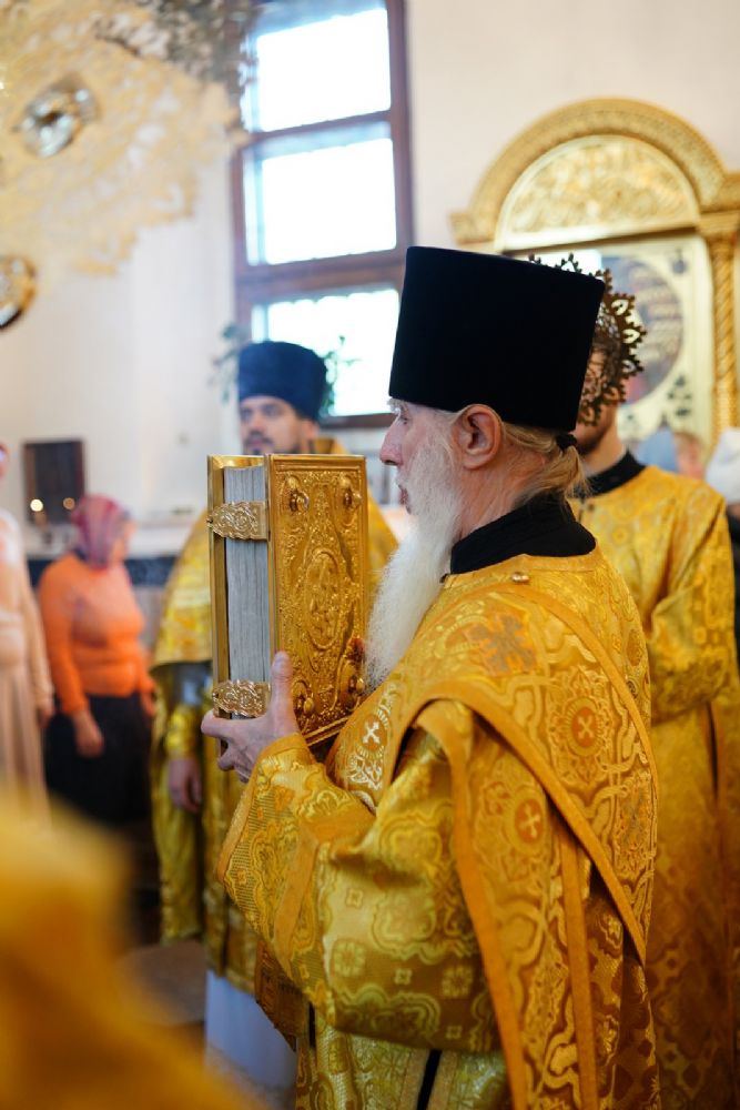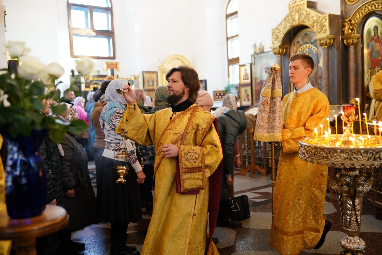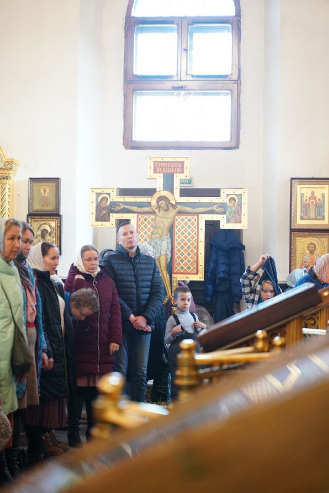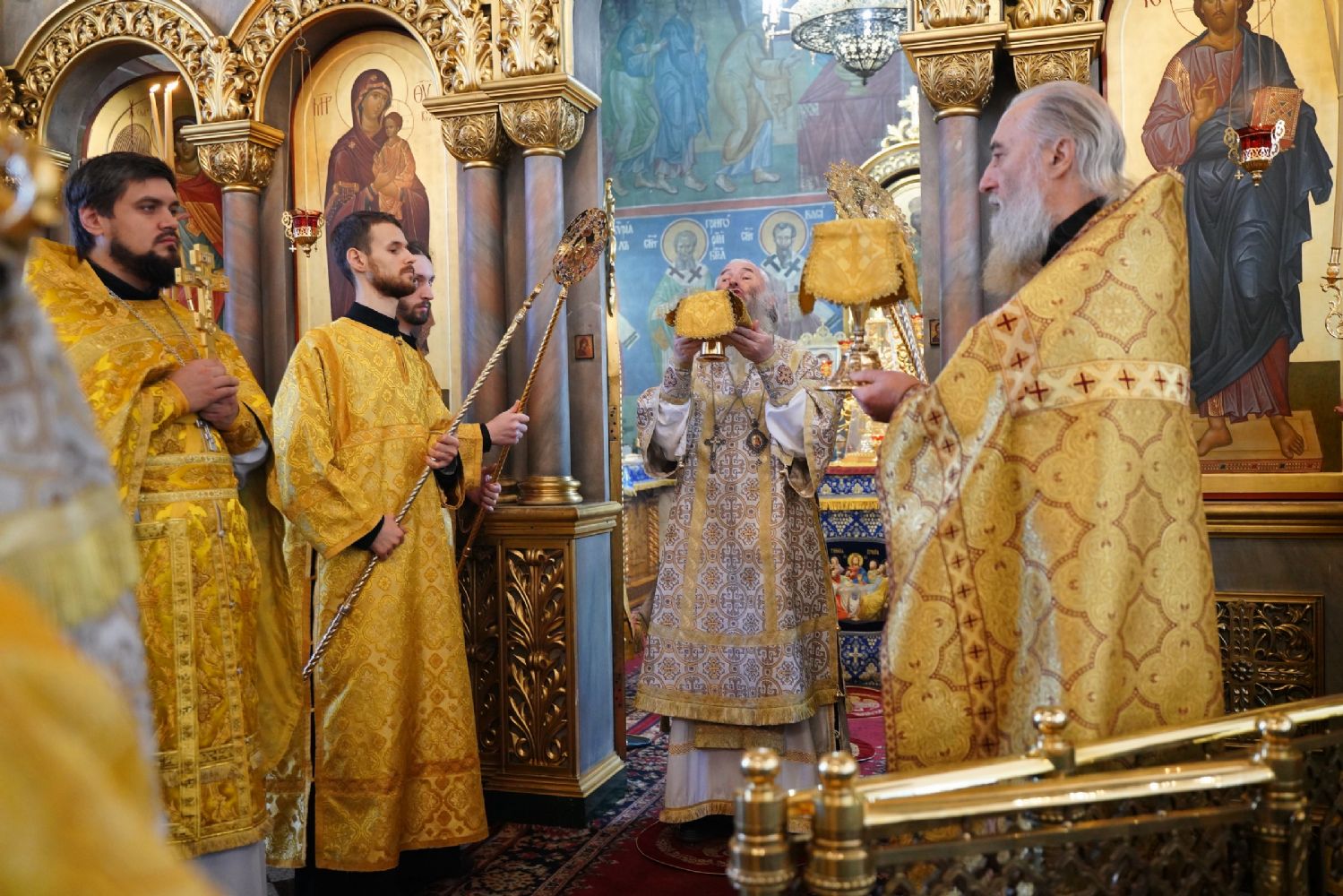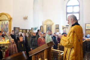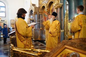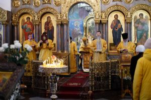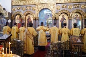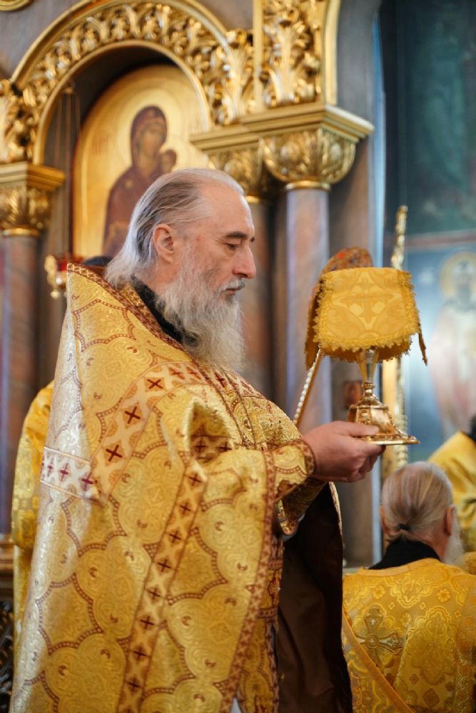 Архипастырю сослужили настоятель храма протоиерей Сергий Филонов, клирики храма иерей Никита Иванов и диакон Александр Мельников, а также протодиакон Михаил Козловский. Песнопения исполнял хор храма.