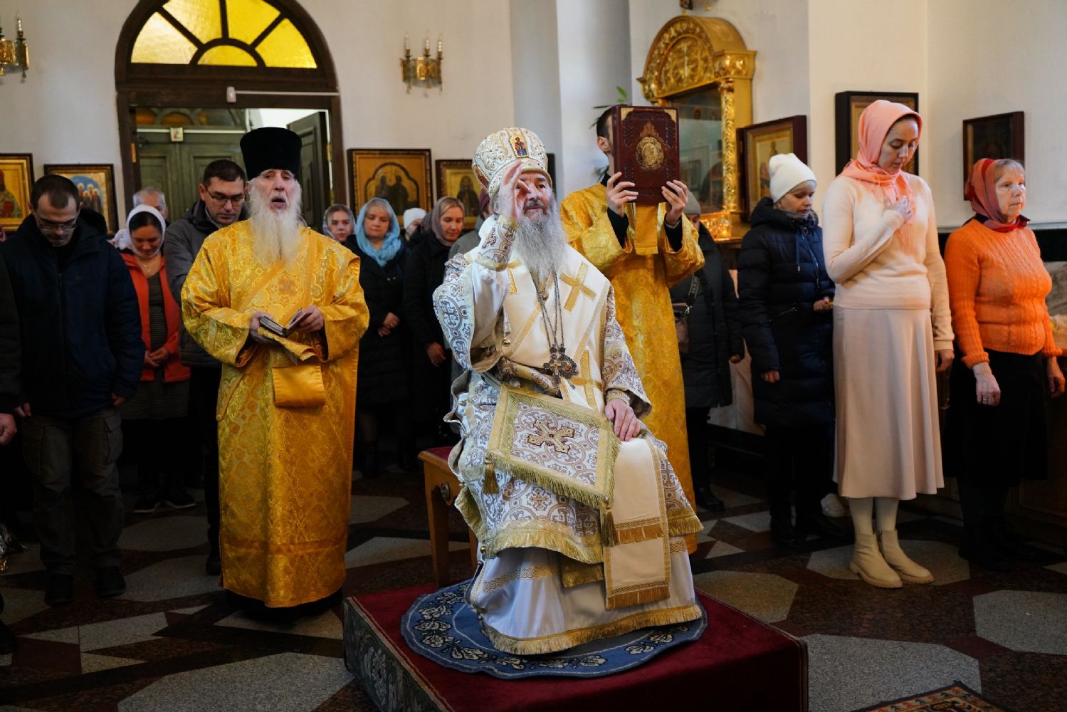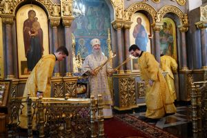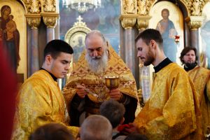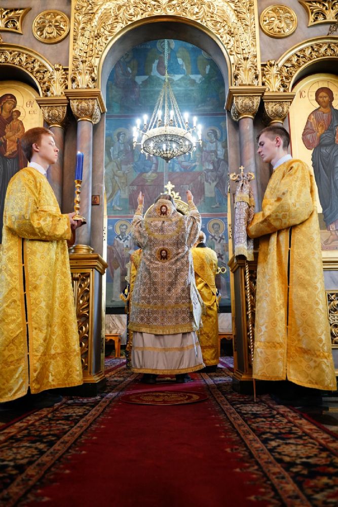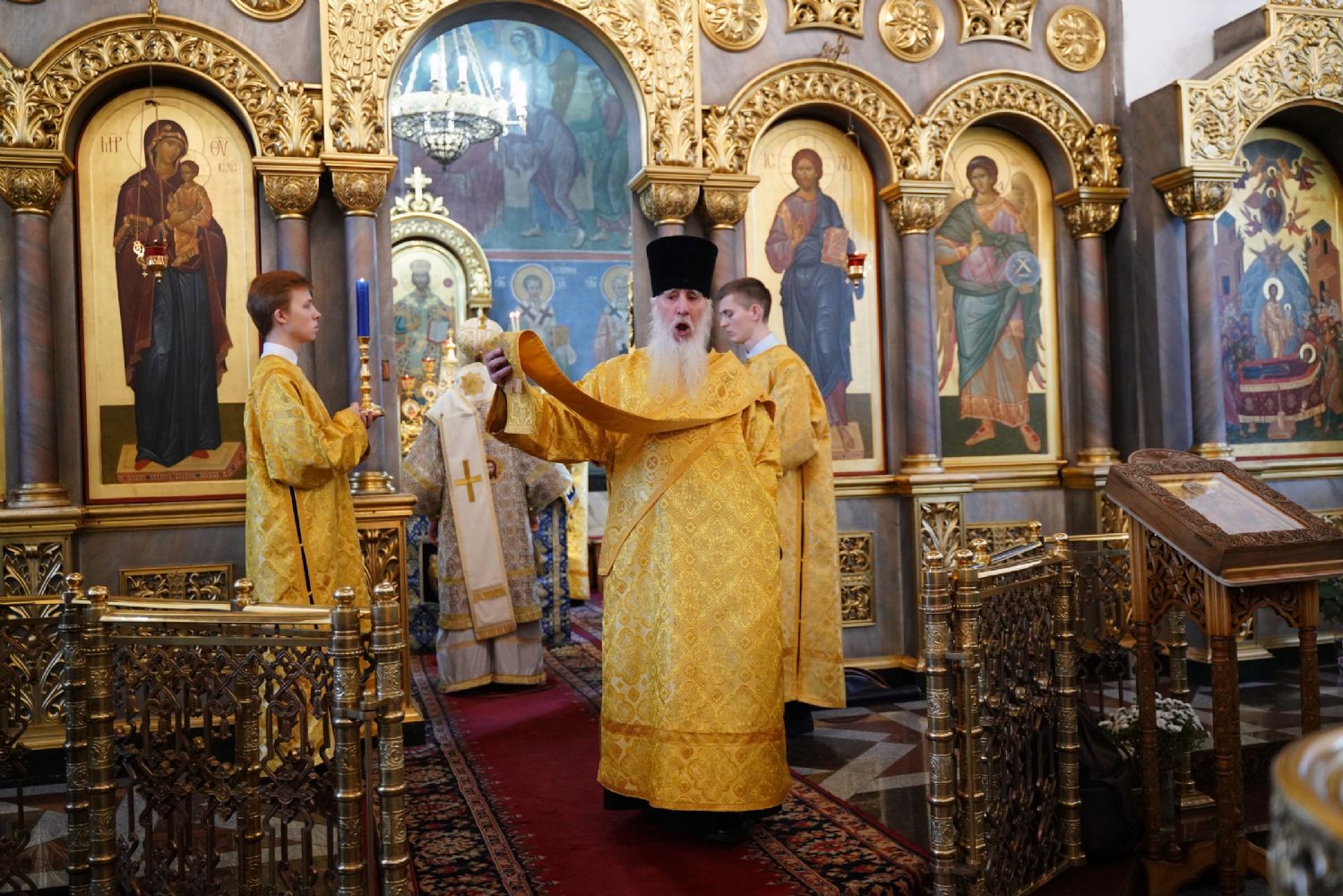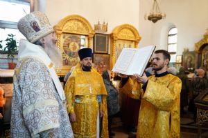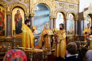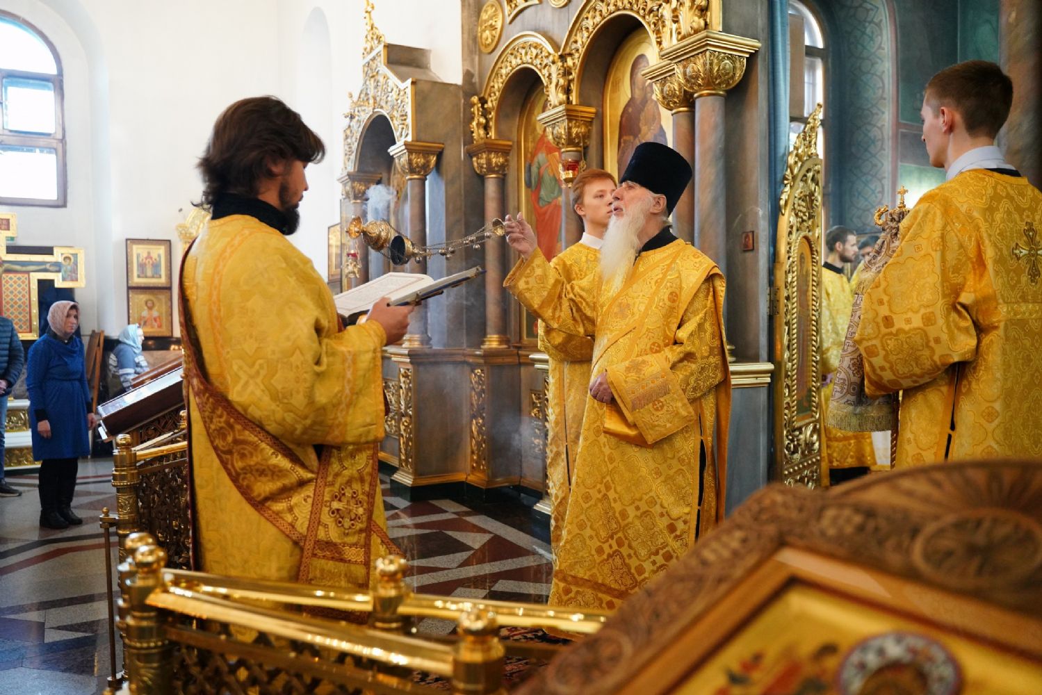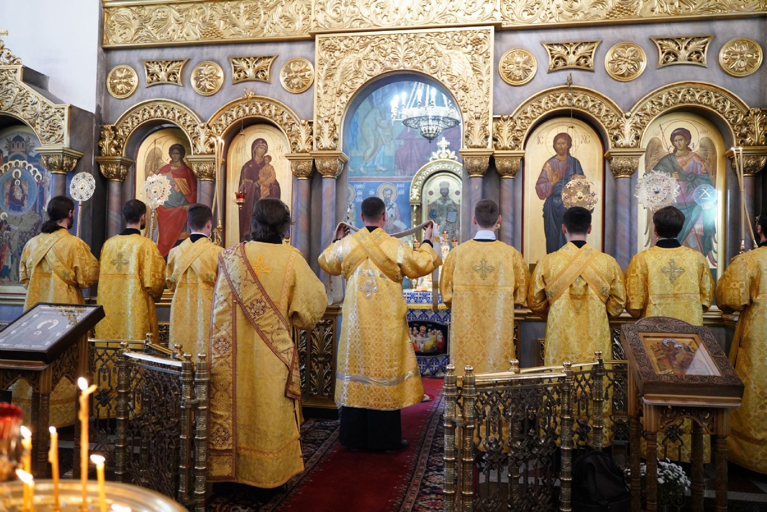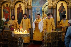 Архипастырю сослужили настоятель храма протоиерей Сергий Филонов, клирики храма иерей Никита Иванов и диакон Александр Мельников, а также протодиакон Михаил Козловский. Песнопения исполнял хор храма.
