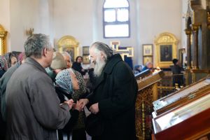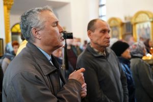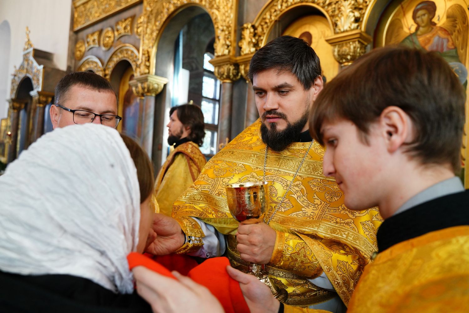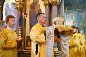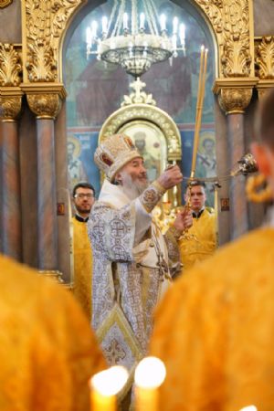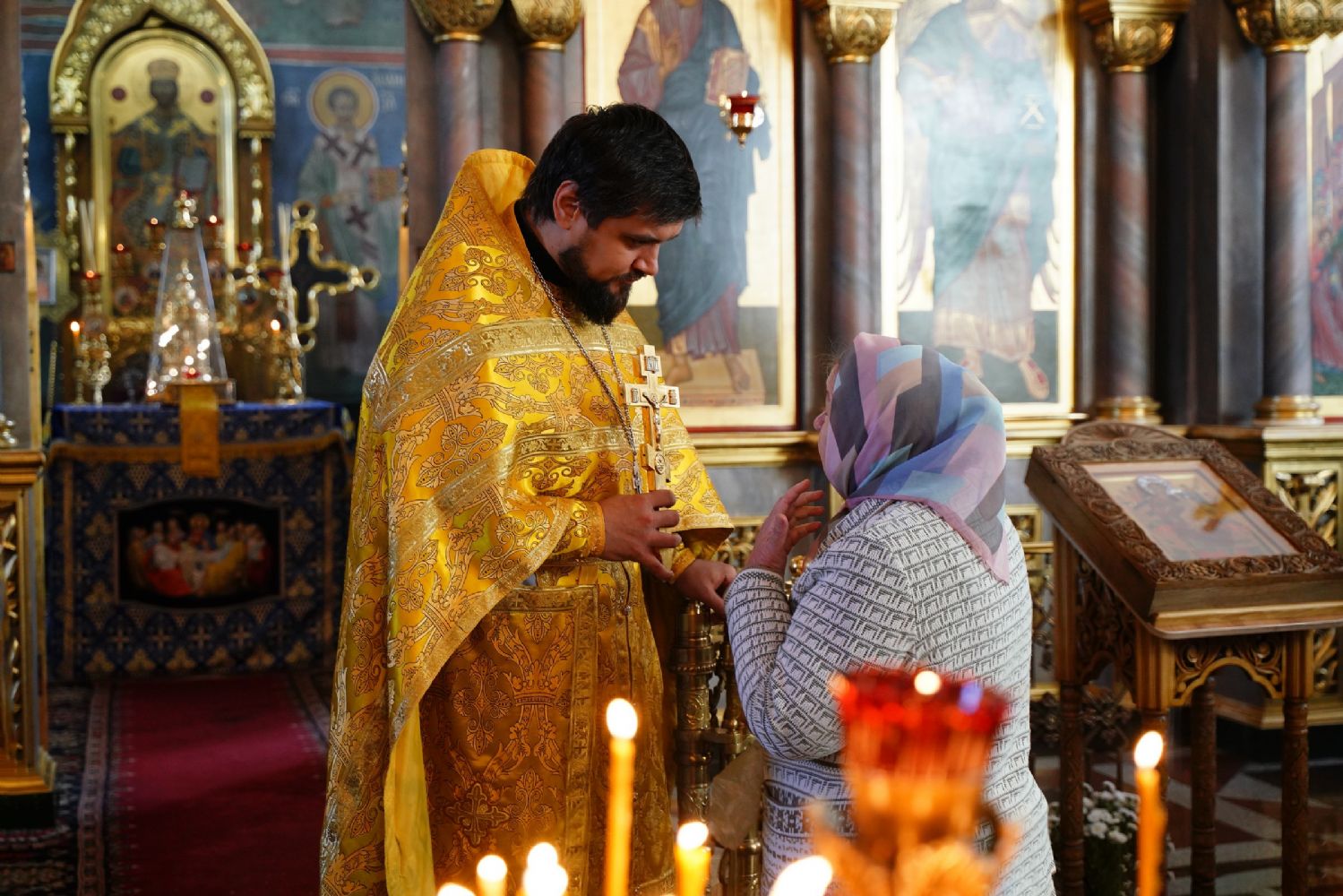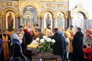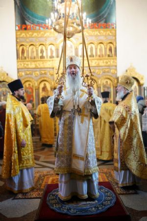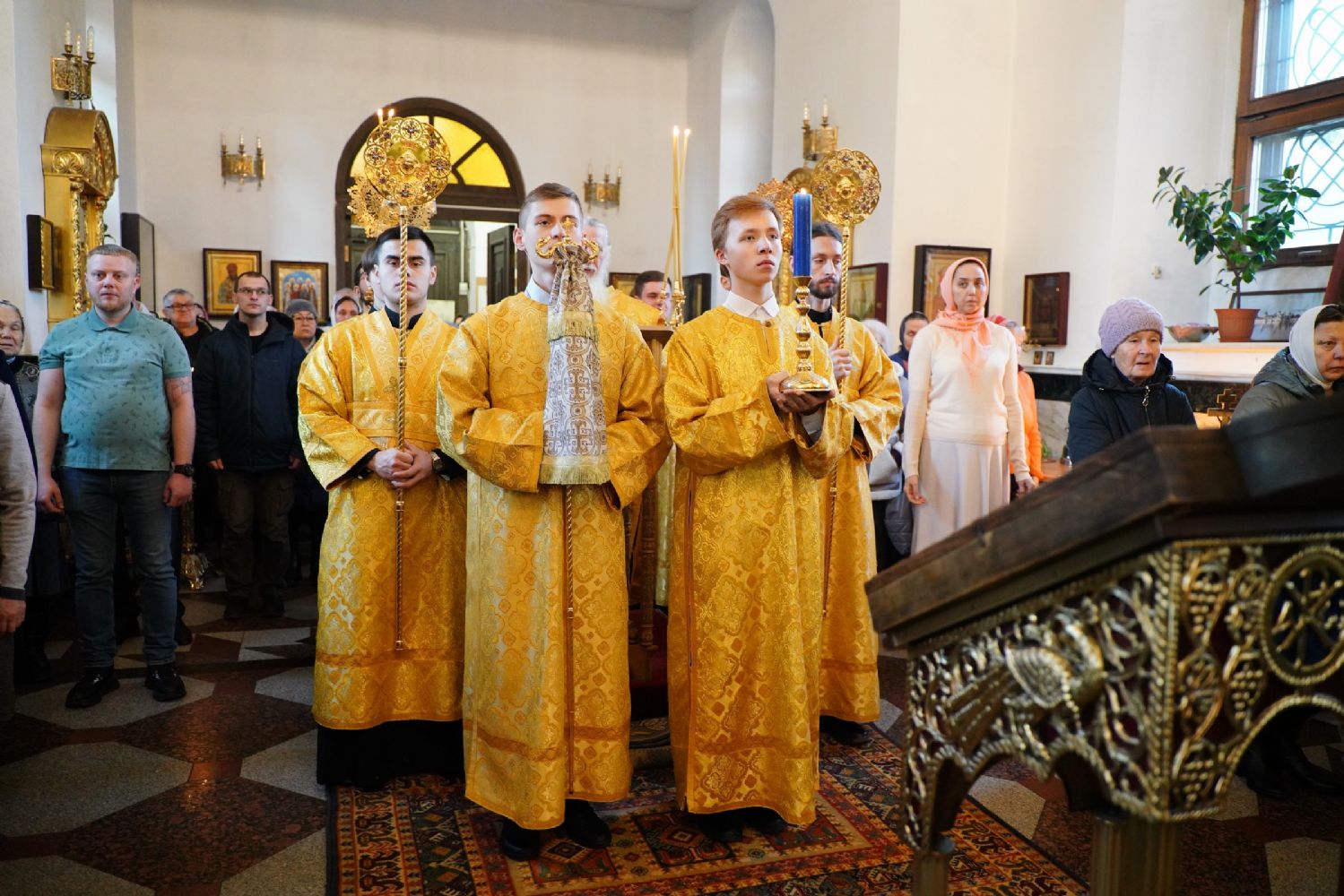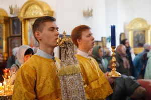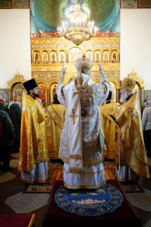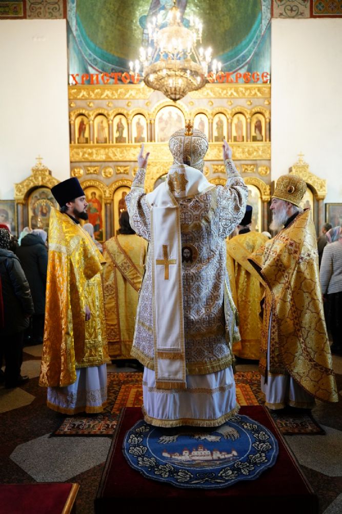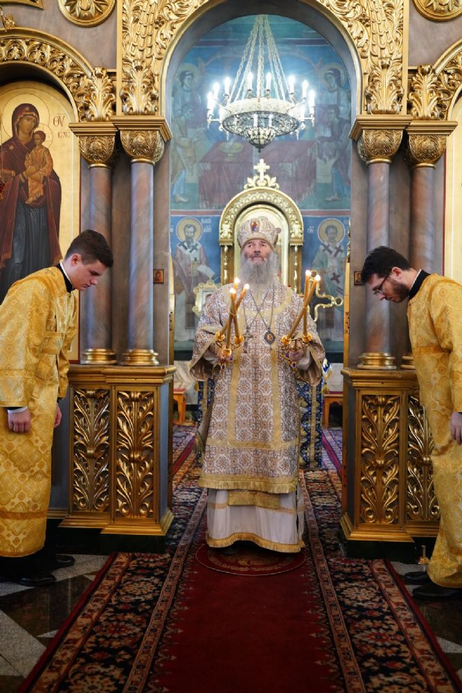 Архипастырю сослужили настоятель храма протоиерей Сергий Филонов, клирики храма иерей Никита Иванов и диакон Александр Мельников, а также протодиакон Михаил Козловский. Песнопения исполнял хор храма.
