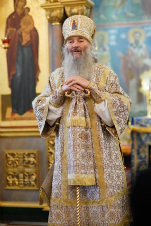 После чтения Евангелия митрополит Иоанн обратился к собравшимся с проповедью, разъяснив духовный смысл притчи о богаче и Лазаре.