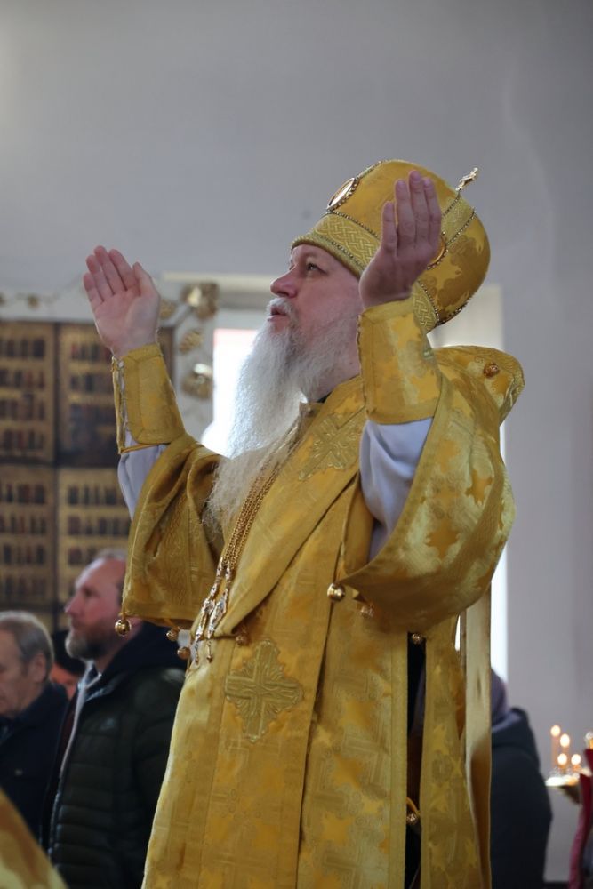 Владыке сослужили клирики собора, песнопения исполнял архиерейский хор.
