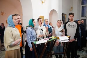 Традиционно, акафист, прославляя Пресвятую Богородицу, вместе со священством и хором пели все прихожане.
