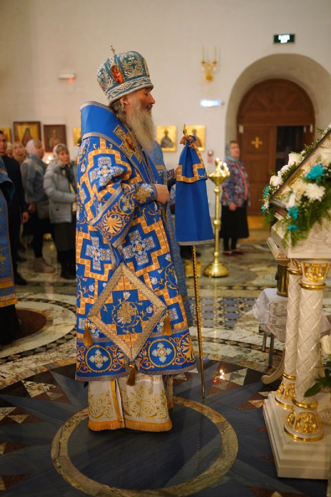 Вечером 6 ноября митрополит Йошкар-Олинский и Марийский Иоанн возглавил вечерню с акафистом Пресвятой Богородице в храме иконы Божией Матери «Всех скорбящих Радость» в микрорайоне Тарханово г. Йошкар-Олы.