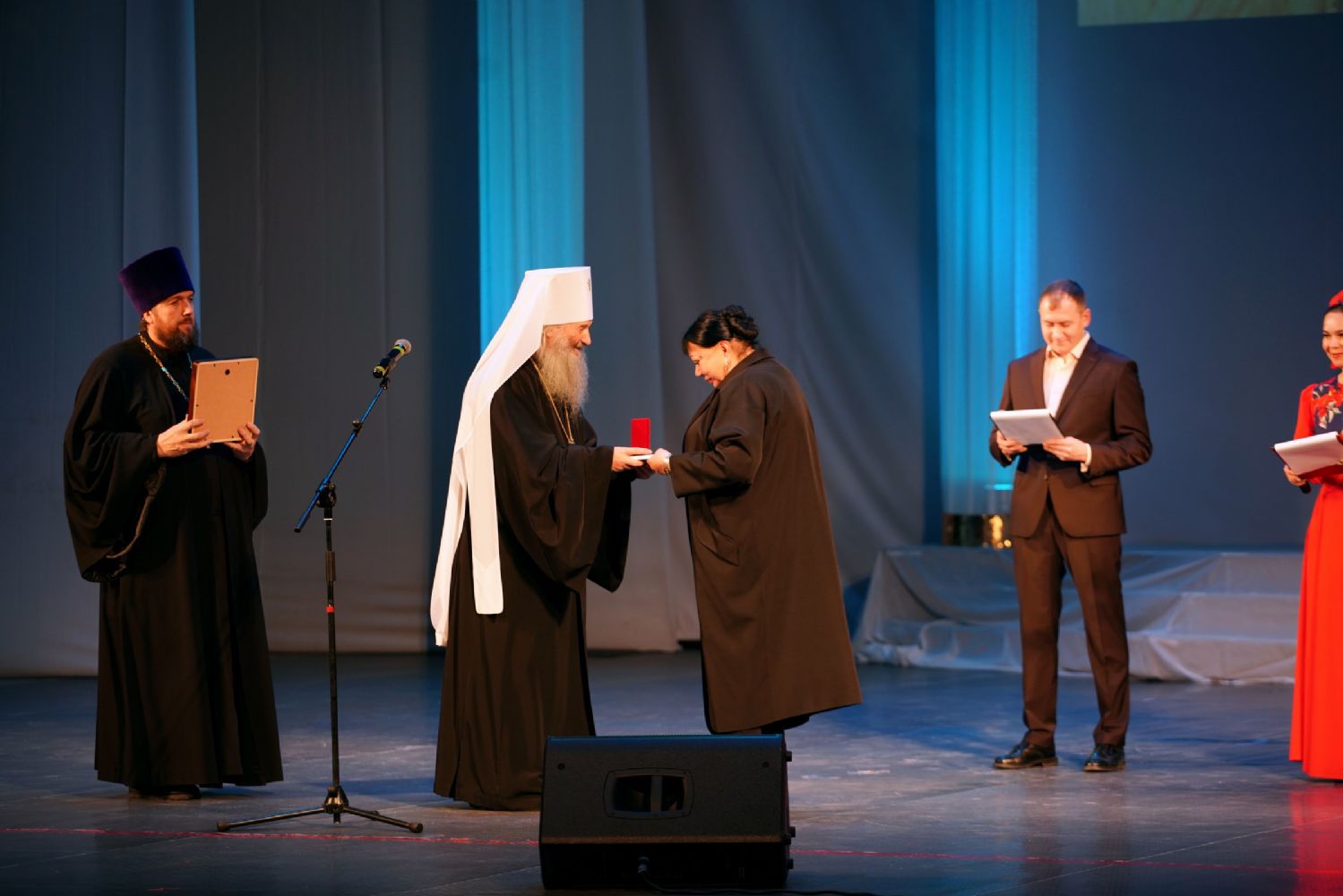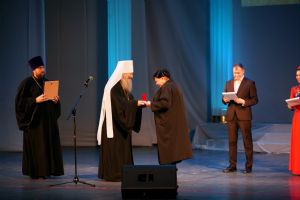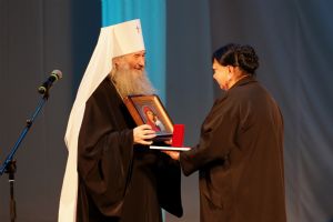 За особый вклад в созидание церковной жизни в Йошкар-Олинской и Марийской епархии митрополит Иоанн наградил директора Центра русской культуры РМЭ Наумову Наталью Георгиевну медалью священомученика Леонида, епископа Марийского, III степени. На молитвенную память владыка вручил Наталье Георгиевне икону Божией Матери «Казанская».