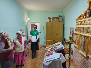 В подарок дому-интернату диакон Владимир вручил икону святителя Гермогена, которая теперь занимает особое место в молельной комнате. А всем присутствовавшим на встрече добровольцы раздали сладости.