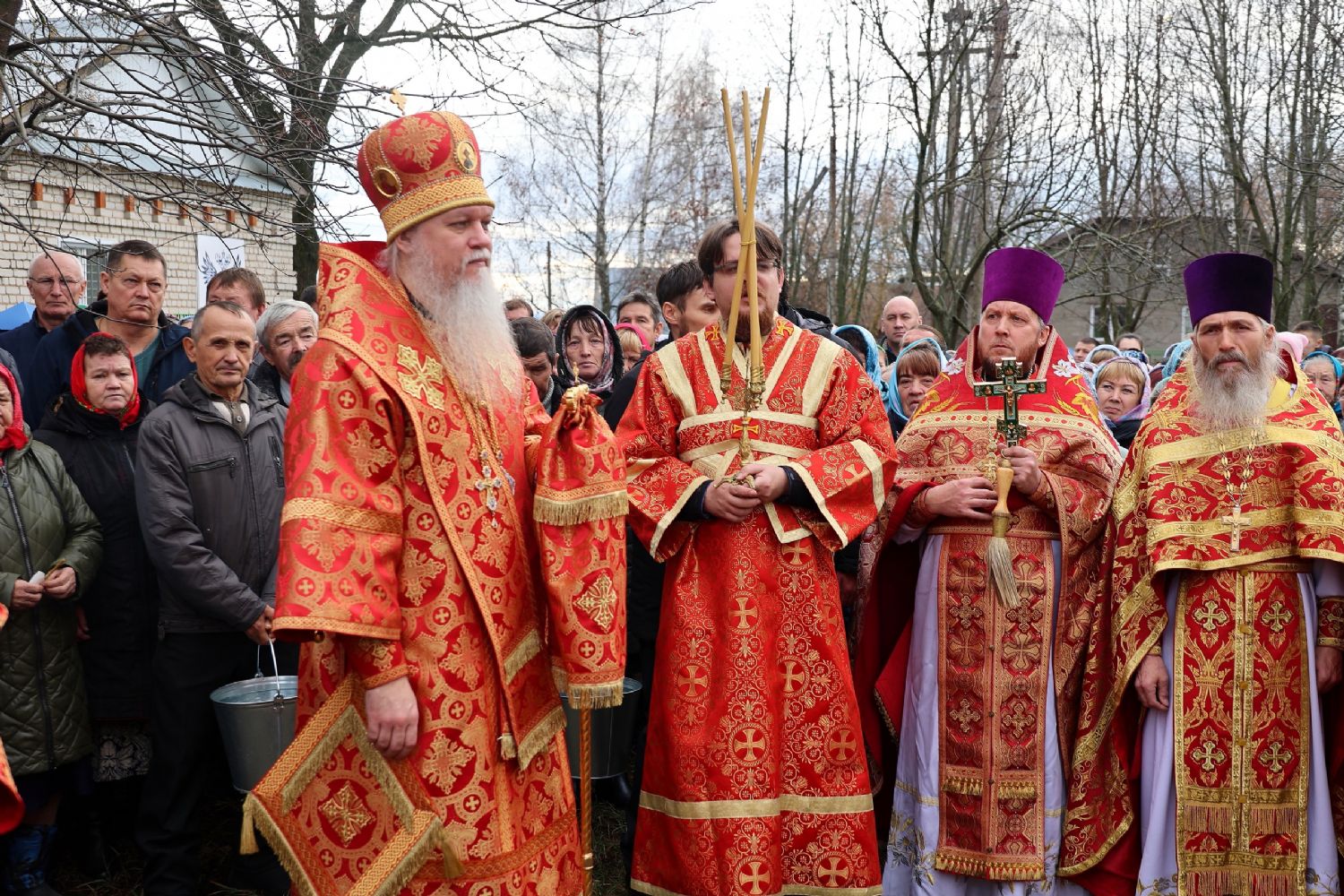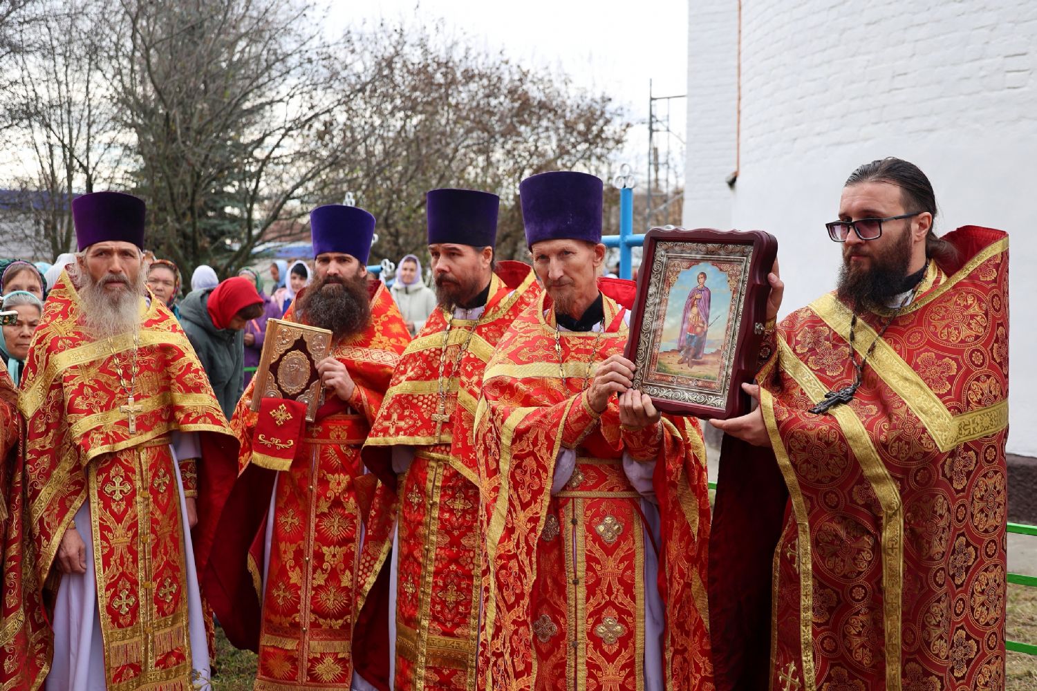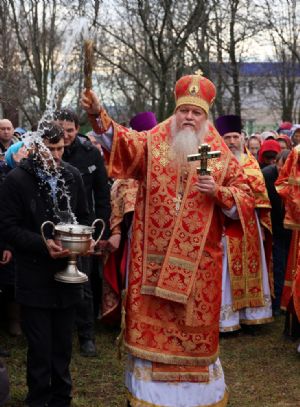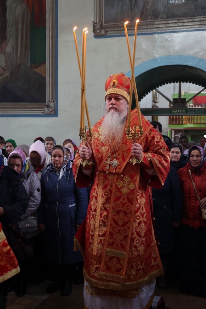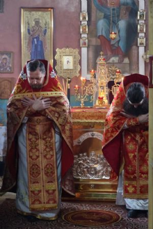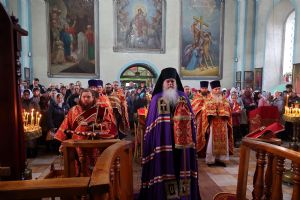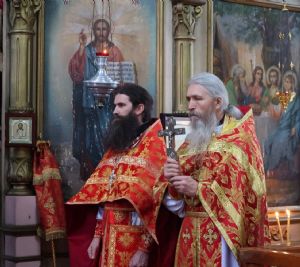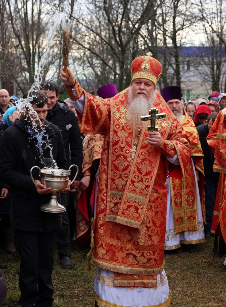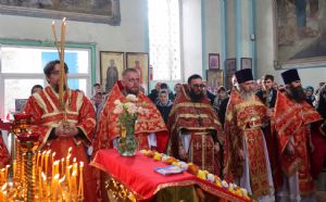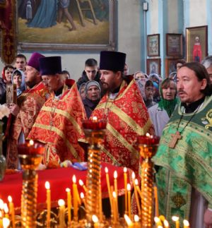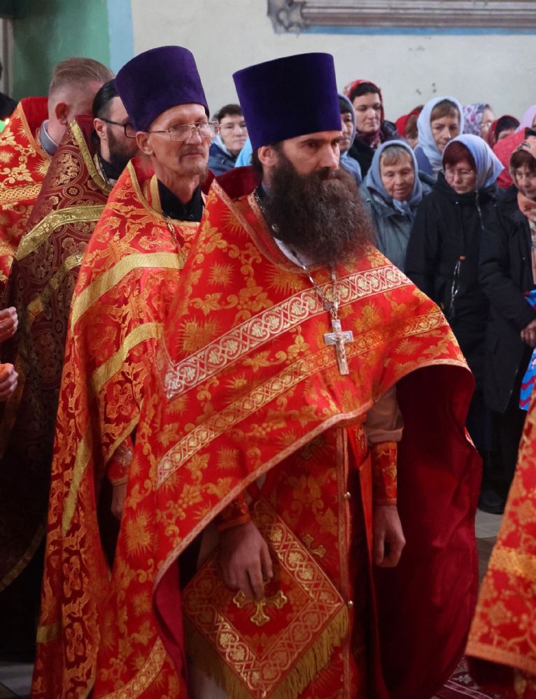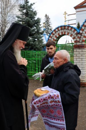 По окончании Литургии был совершен крестный ход вокруг храма, после чего епископ Феофан обратился к верующим с архипастырским словом, напомнив житие великомученика Димитрия Солунского - римского военачальника, проконсула г. Фессалоники, пострадавшего за веру во Христа в начале IV века при императоре Максимиане Галерии.
