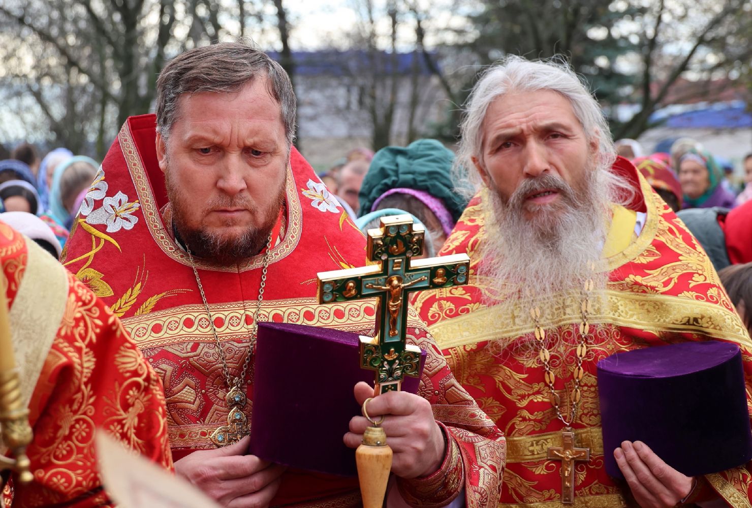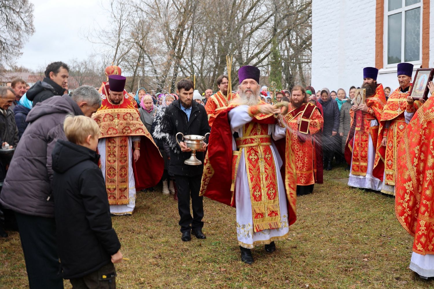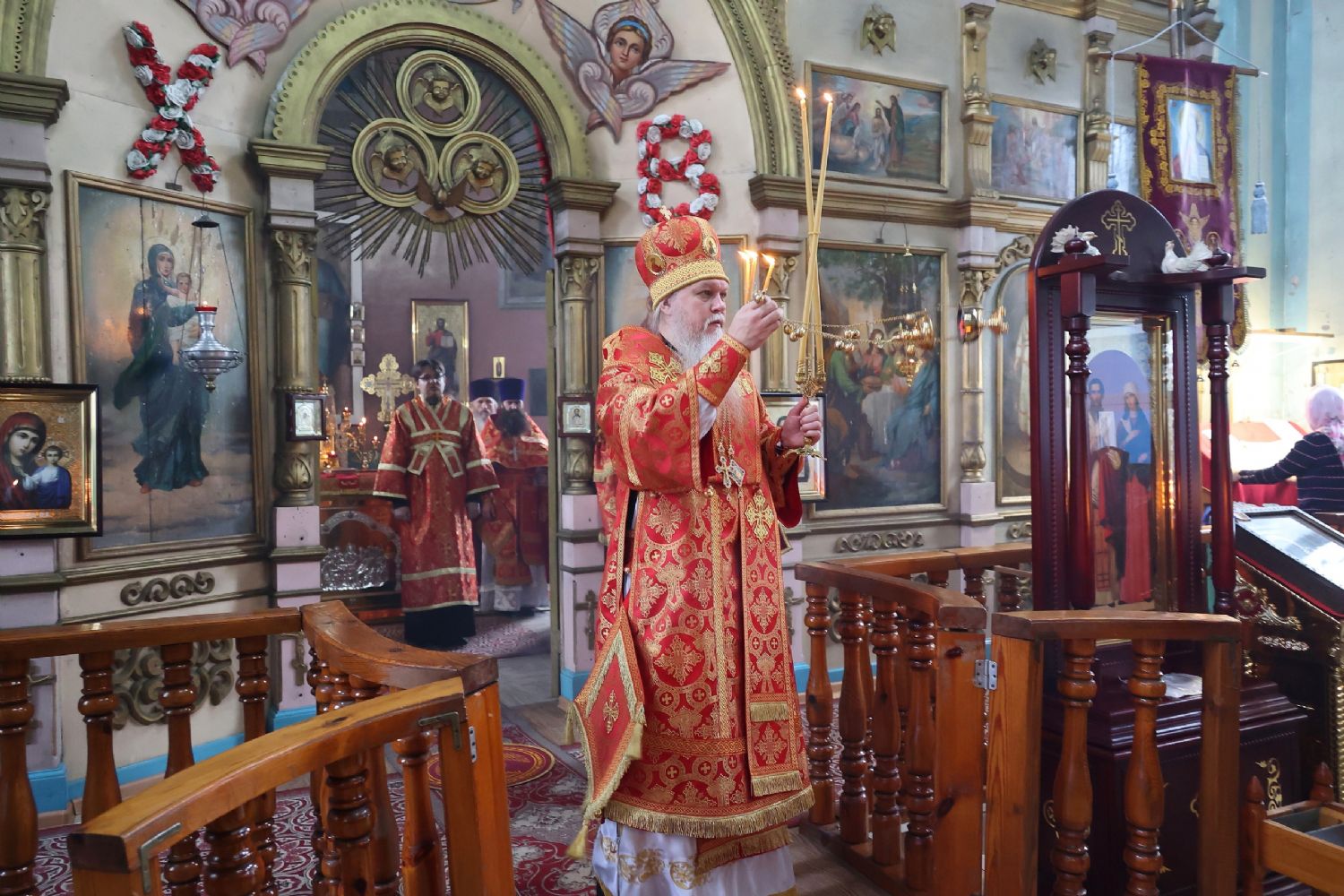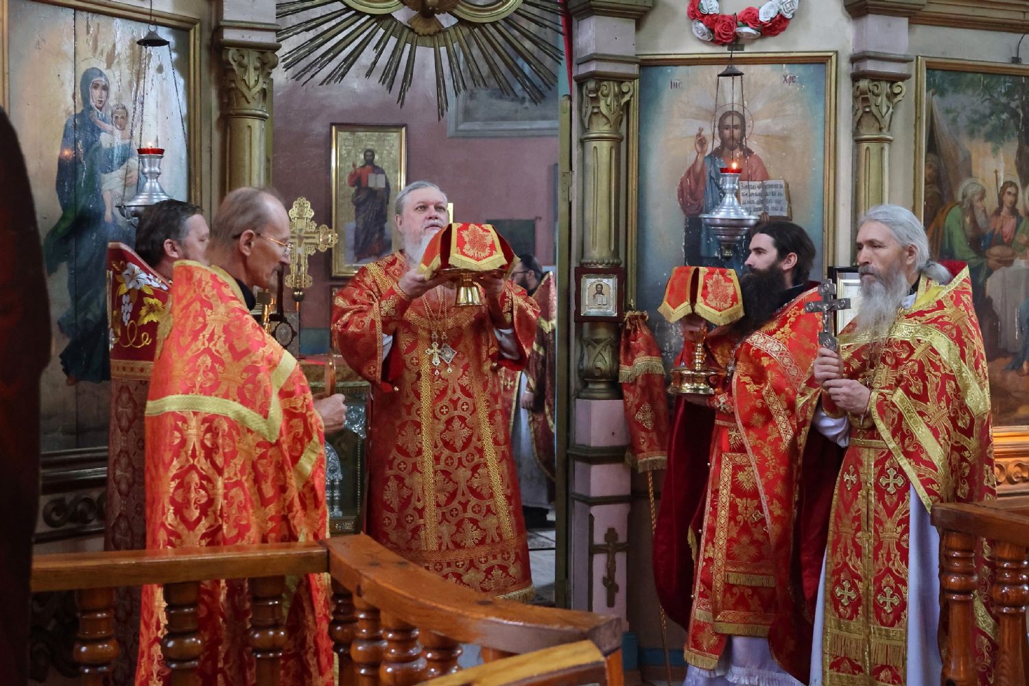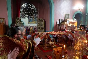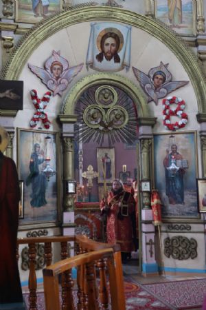 По окончании Литургии был совершен крестный ход вокруг храма, после чего епископ Феофан обратился к верующим с архипастырским словом, напомнив житие великомученика Димитрия Солунского - римского военачальника, проконсула г. Фессалоники, пострадавшего за веру во Христа в начале IV века при императоре Максимиане Галерии.