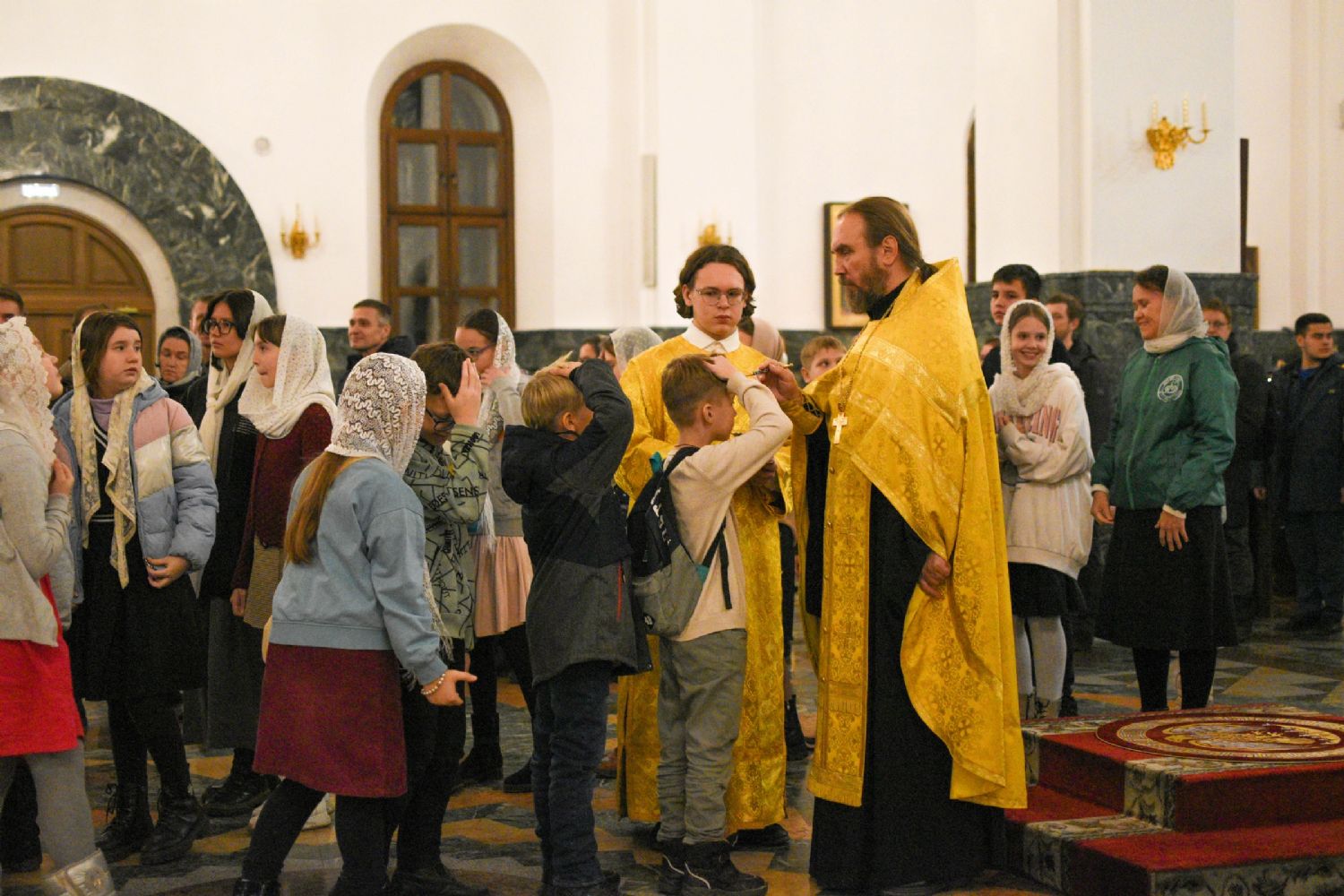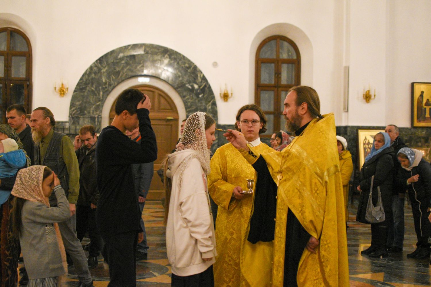 Его Высокопреосвященству сослужили секретарь Йошкар-Олинского епархиального управления иеромонах Серафим (Пасанаев), клирики собора иереи Никифор Захаров, Евгений Самойлов, Александр Староверов и Иоанн Милютин, диаконы Андрей Дружинин и Артемий Бобоч, а также протодиакон Михаил Козловский. Песнопения антифонно исполняли старший и младший составы детско-юношеского хора «Благовест» под управлением регентов Татьяны Черновой и Надежды Поздеевой.