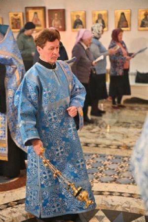 Владыке сослужили клирики храма иереи Игорь Коваль, Сергий Пуртов, диакон Олег Михайлов, а также протодиакон Михаил Козловский. Песнопения исполнял хор храма под управлением Надежды Пуртовой.