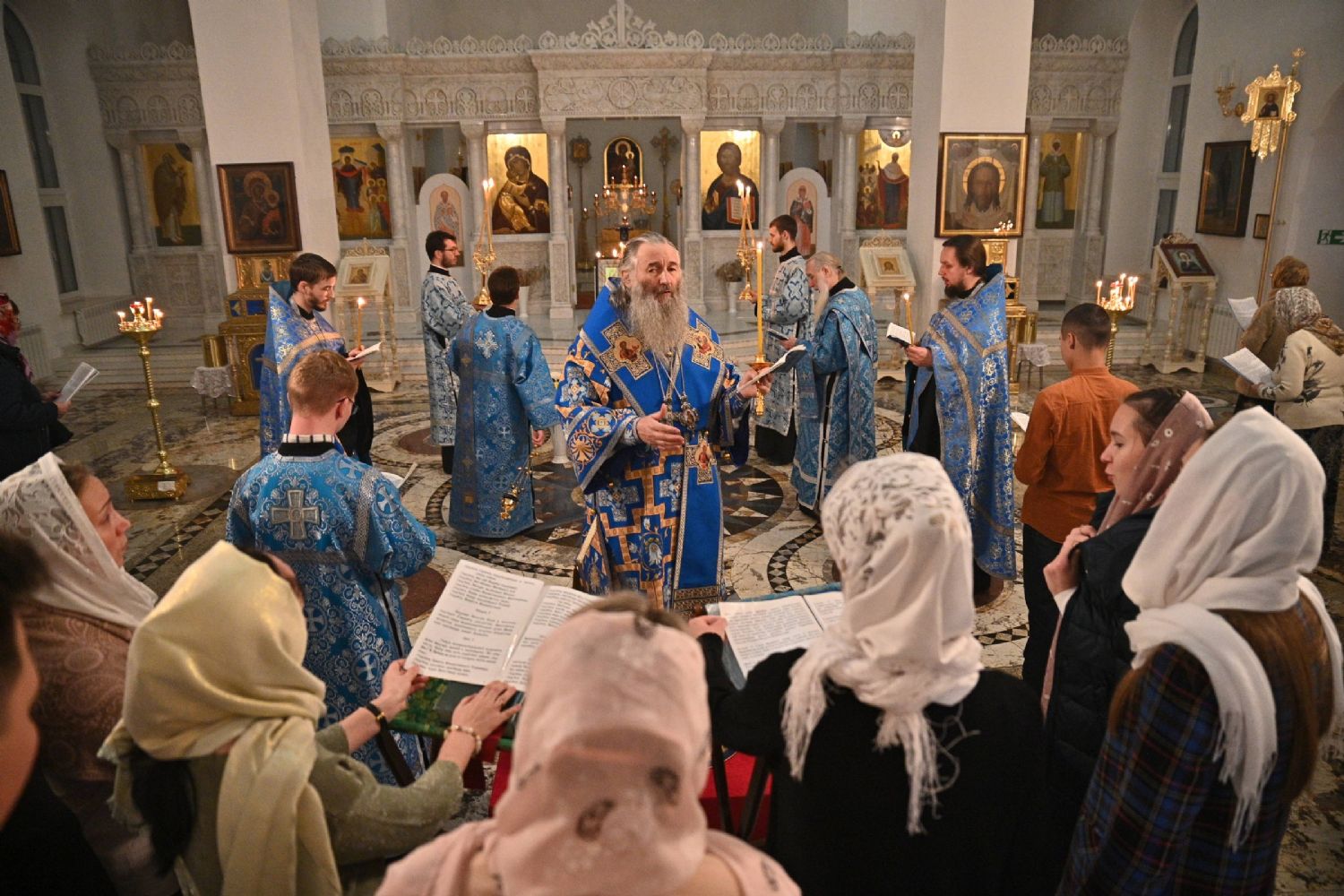 22 ноября вечером, в канун Недели 24-й по Пятидесятнице, дня памяти преподобного Матфея Яранского, митрополит Йошкар-Олинский и Марийский Иоанн возглавил всенощное бдение в Благовещенском кафедральном соборе.