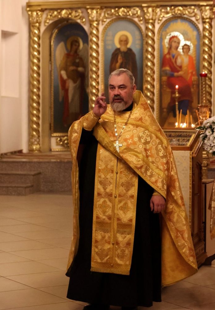 Вначале руководитель отдела по связям с общественностью и СМИ Волжской епархии протоиерей Виталий Михеев в Никольском соборе отслужил молебен о воинах, за которым молились родные и близкие бойцов, участвующих в Специальной военной операции.
