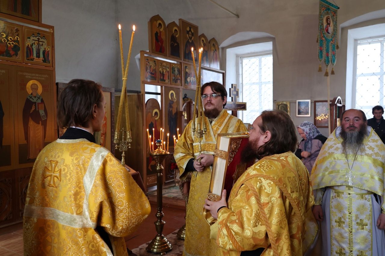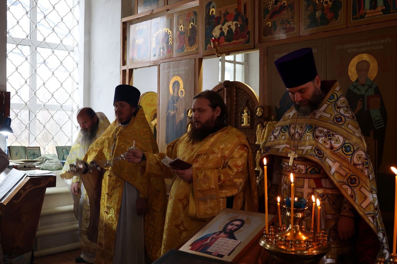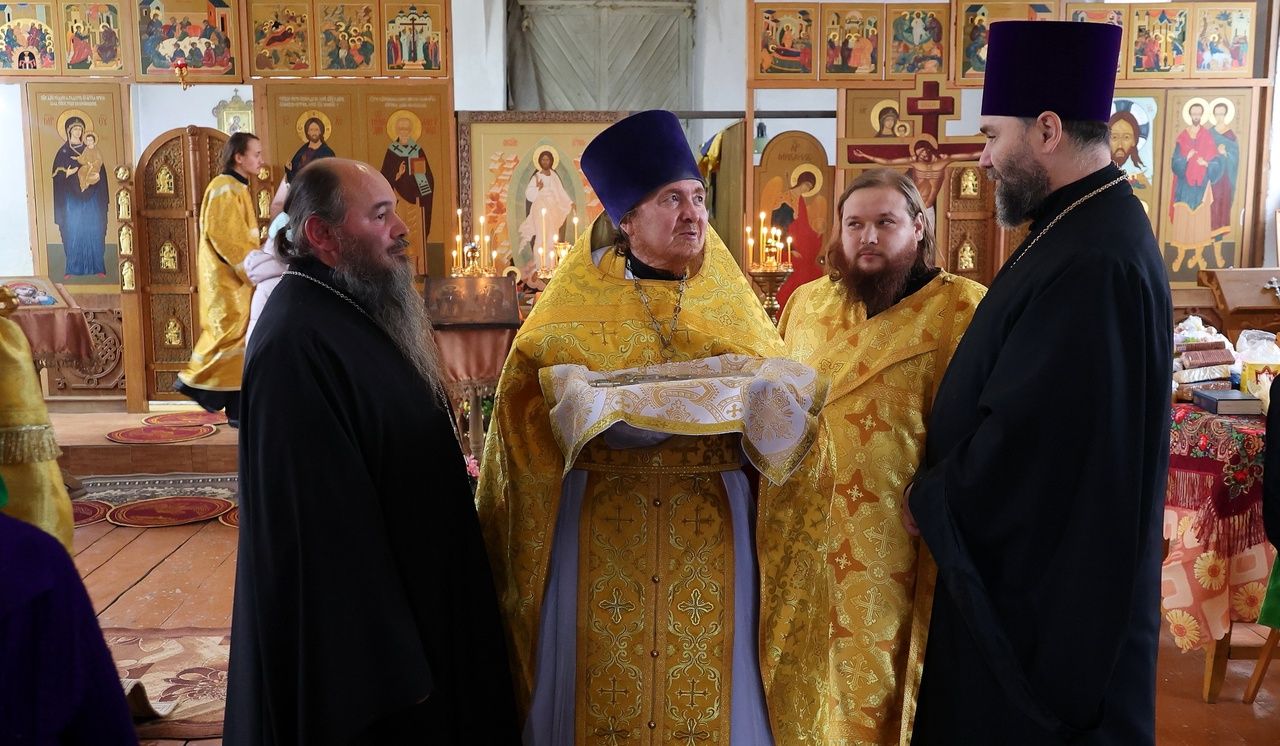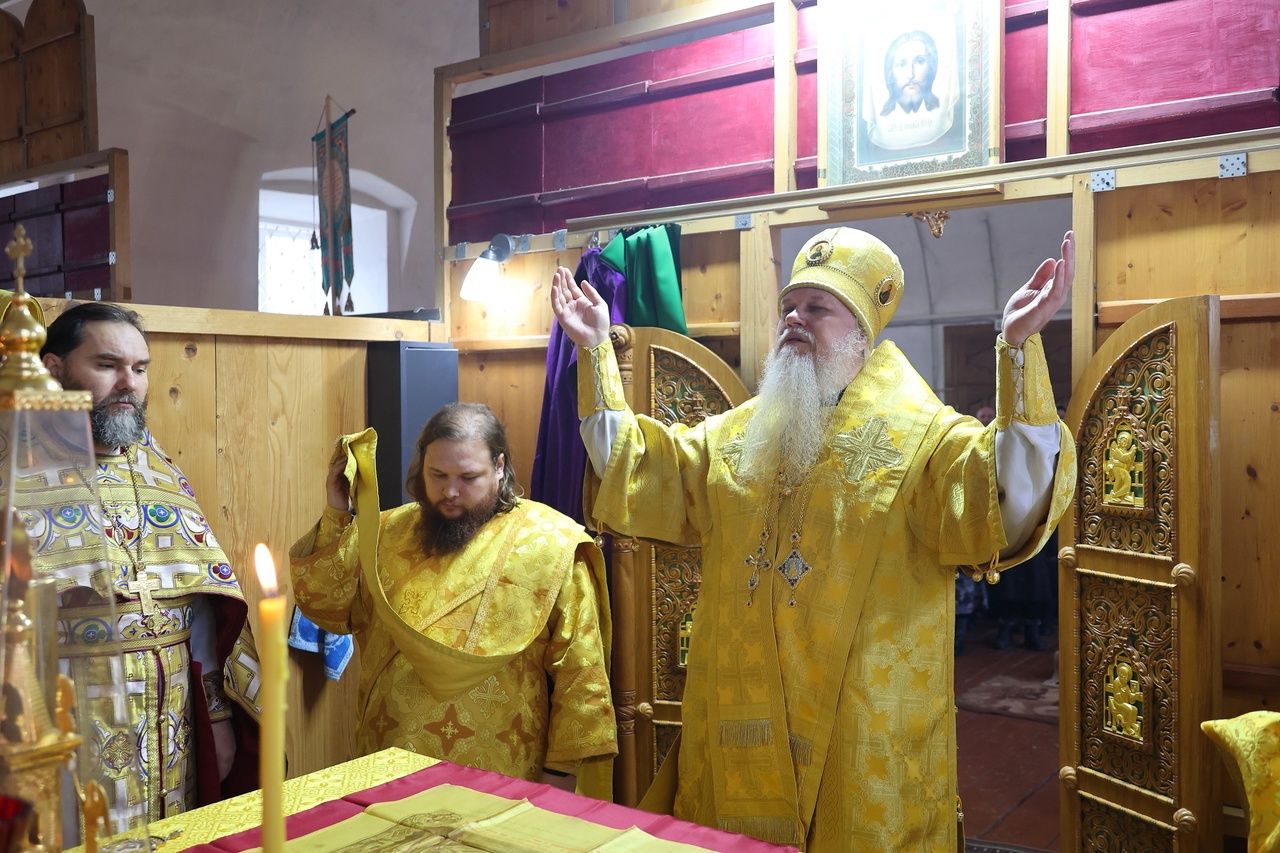 Архипастырю сослужили благочинный Северного церковного округа протоиерей Владимир Власов, настоятель Свято-Троицкого храма с. Мамсинер протоиерей Лев Федотов, настоятель храма Рождества Пресвятой Богородицы с. Хлебниково иерей Сергий Алексеев, клирик Никольского кафедрального собора г. Волжска диакон Иоанн Захаров.
