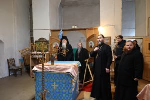 В завершение владыка еще раз поздравил всех с престольным праздником, поблагодарил за соборную молитву и преподал архипастырское благословение.