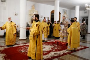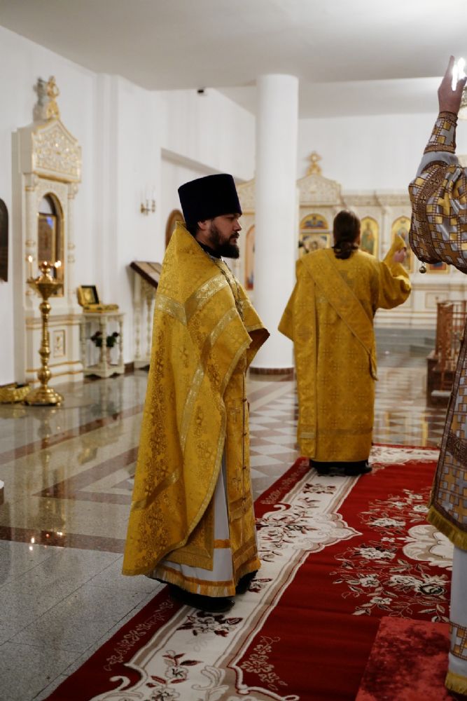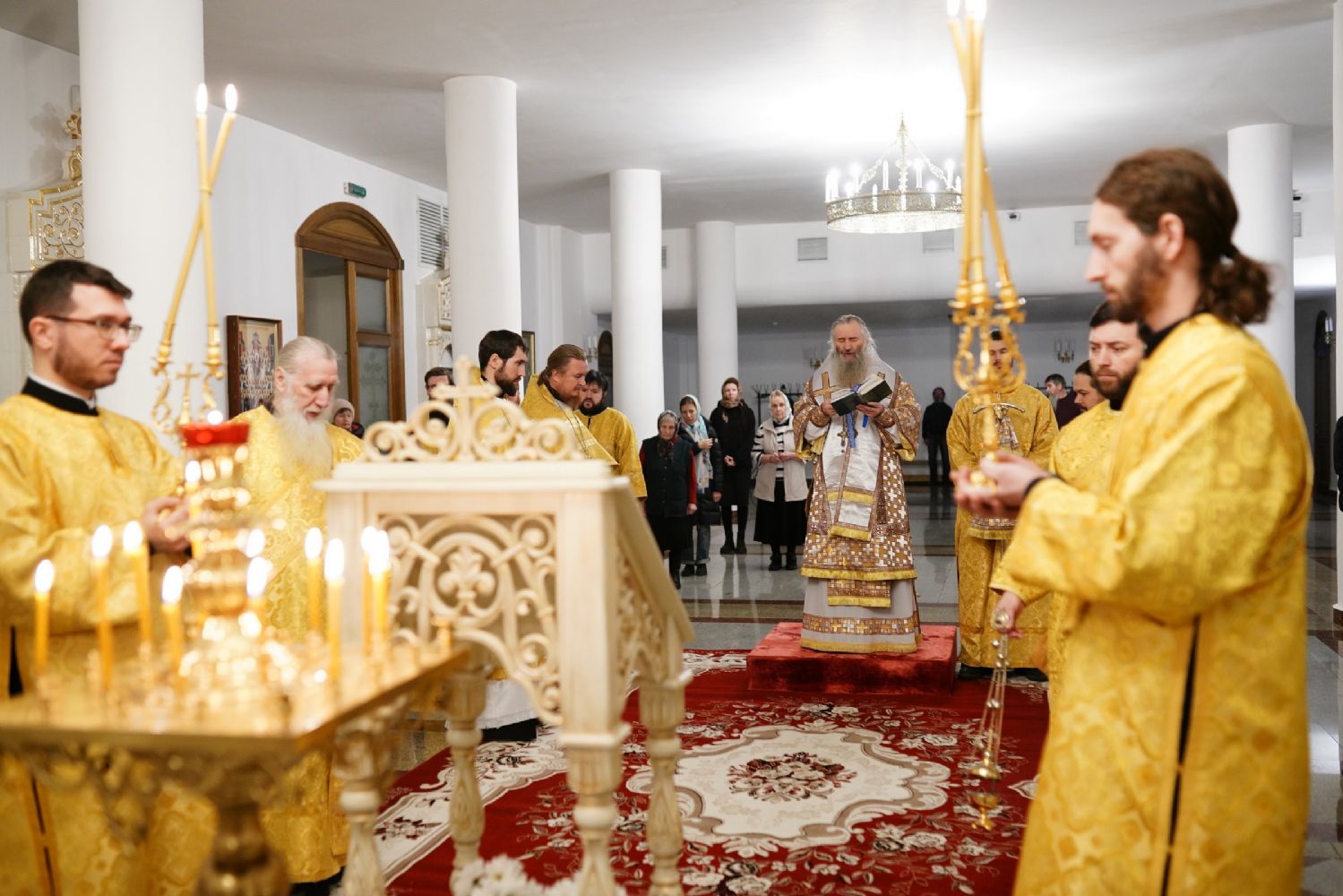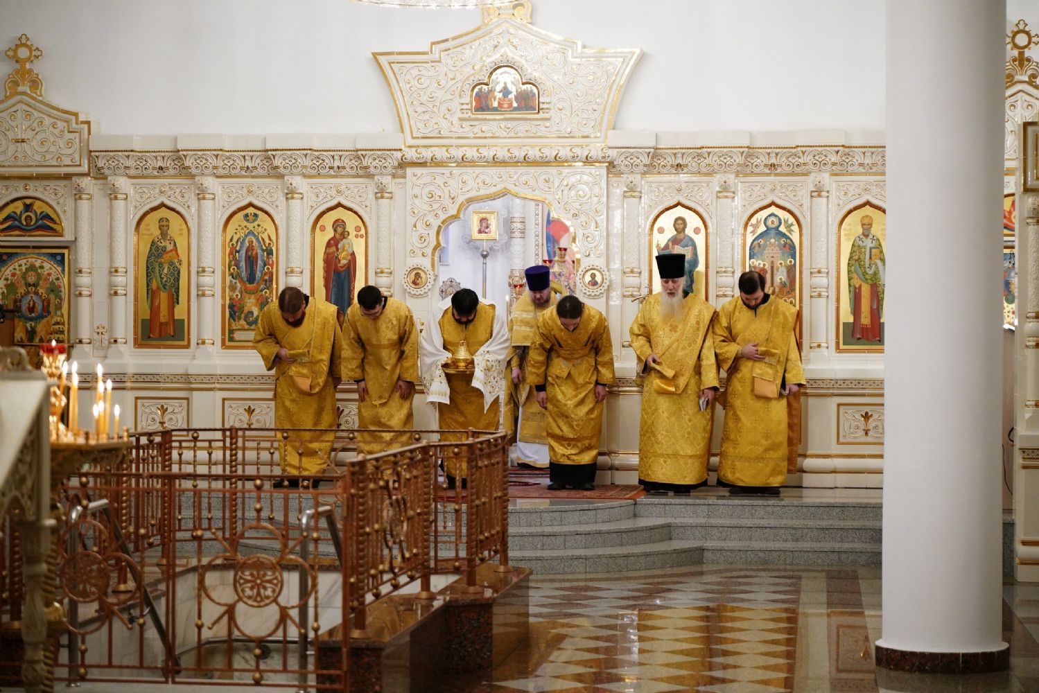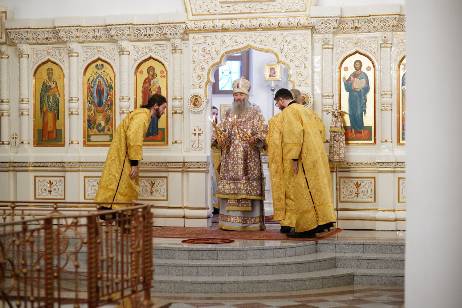 Владыке сослужили ключарь кафедрального собора протоиерей Сергий Поглазов, клирики собора иереи Никифор Захаров и Иоанн Милютин, диаконы Андрей Дружинин и Артемий Бобоч, а также протодиакон Михаил Козловский. Песнопения исполнял хор «Благовест» под управлением регента Татьяны Черновой.