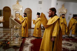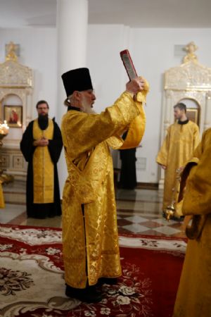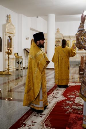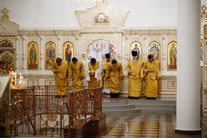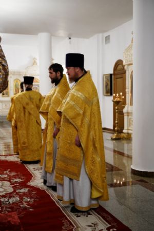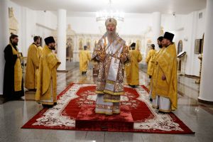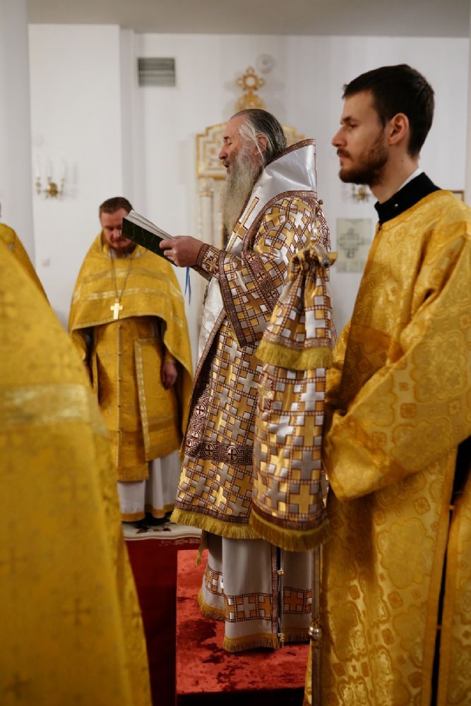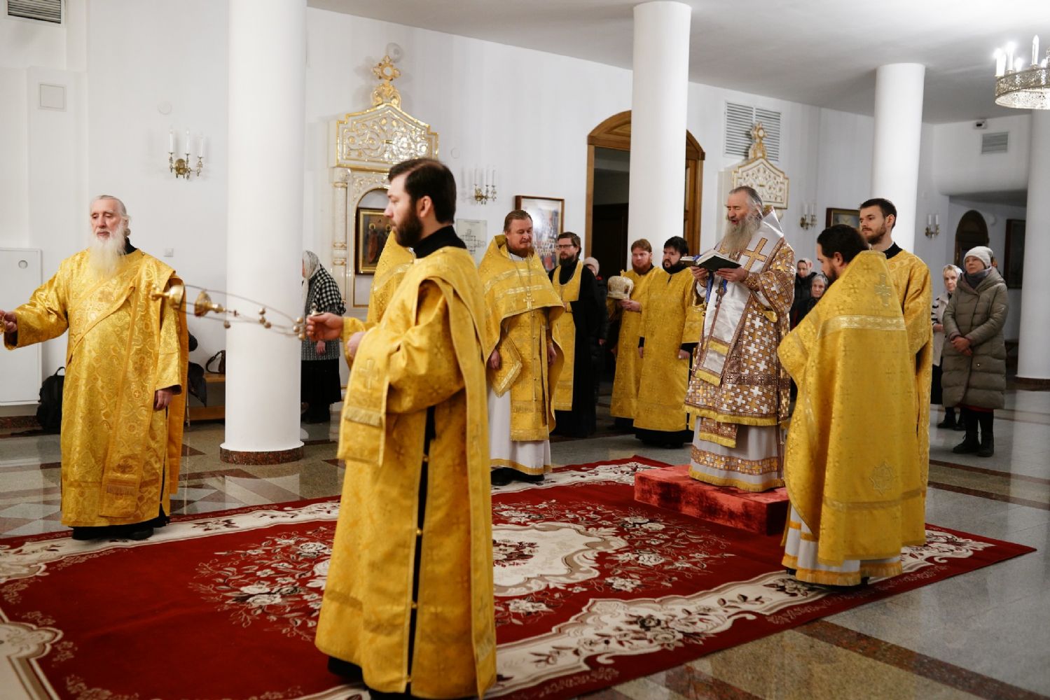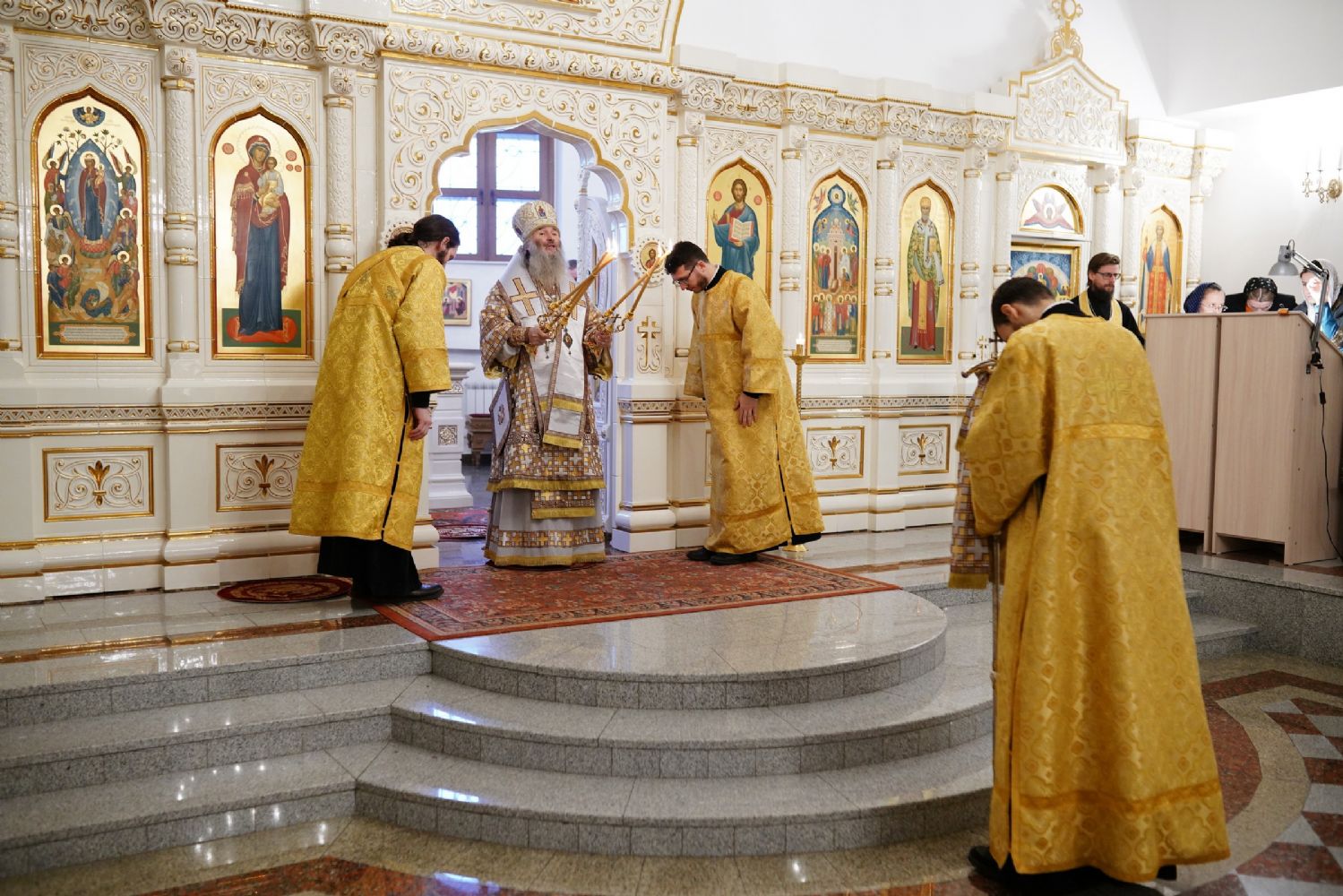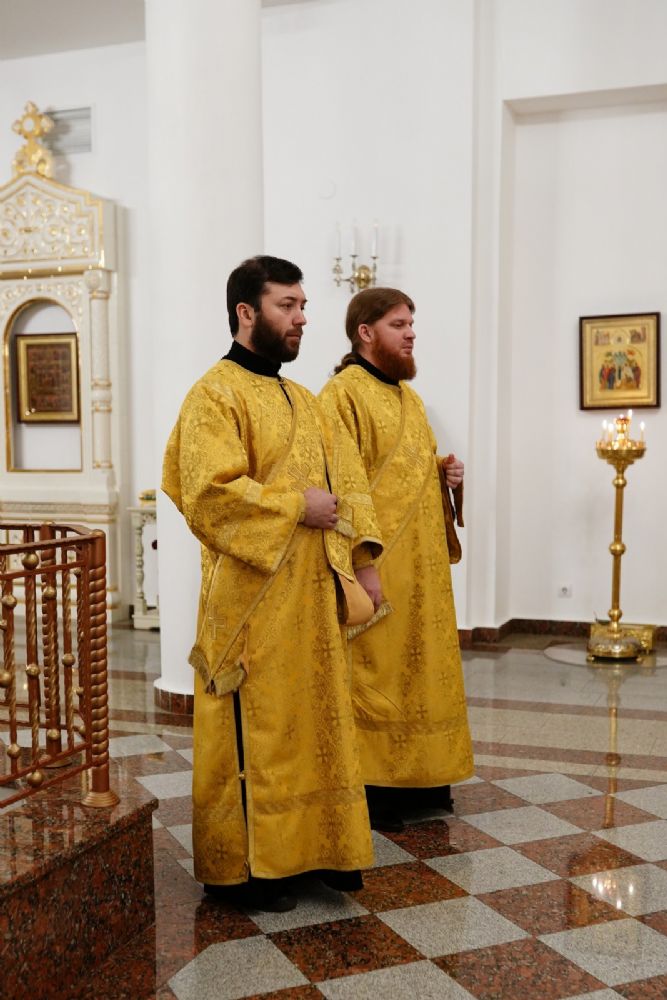 Владыке сослужили ключарь кафедрального собора протоиерей Сергий Поглазов, клирики собора иереи Никифор Захаров и Иоанн Милютин, диаконы Андрей Дружинин и Артемий Бобоч, а также протодиакон Михаил Козловский. Песнопения исполнял хор «Благовест» под управлением регента Татьяны Черновой.