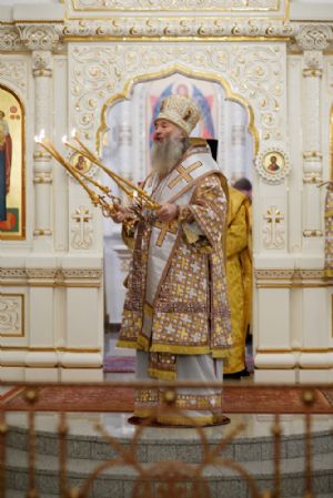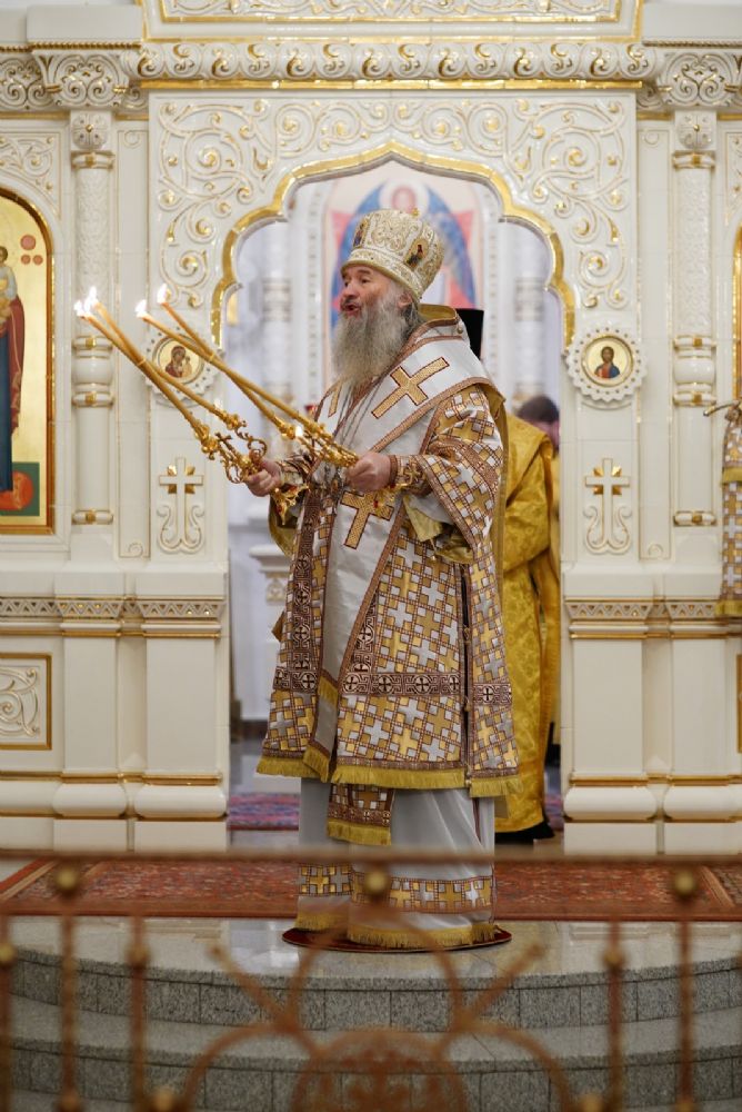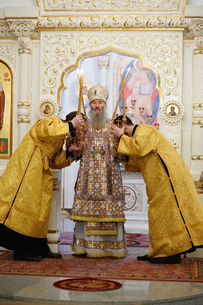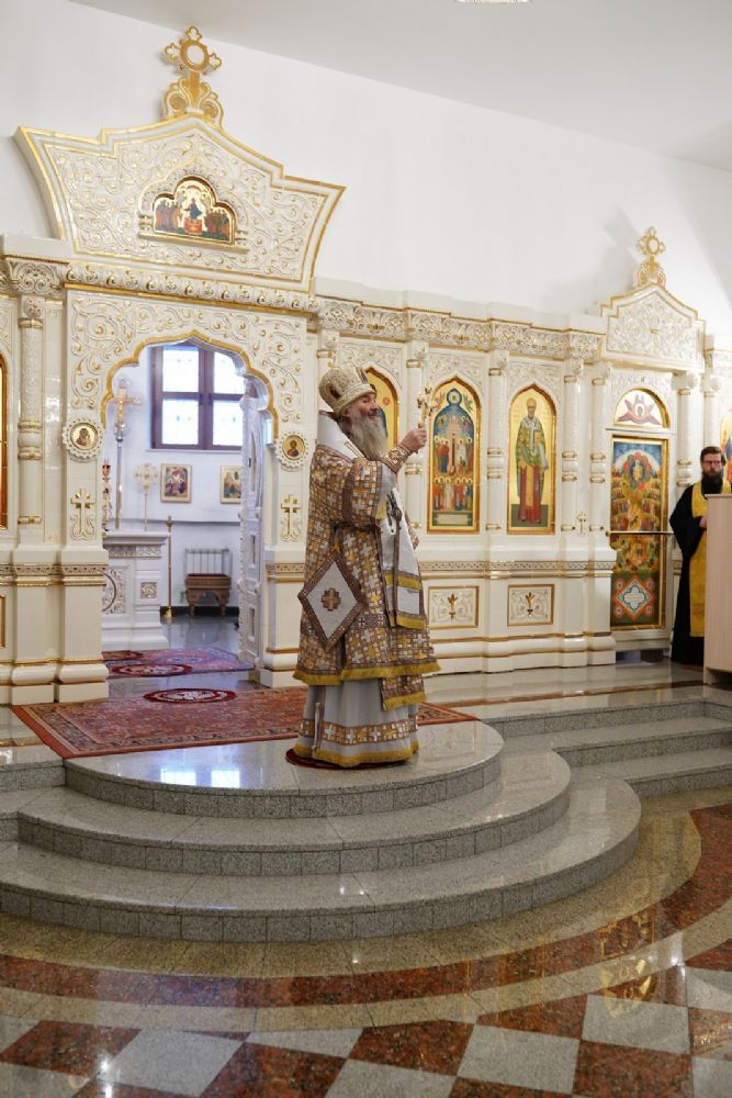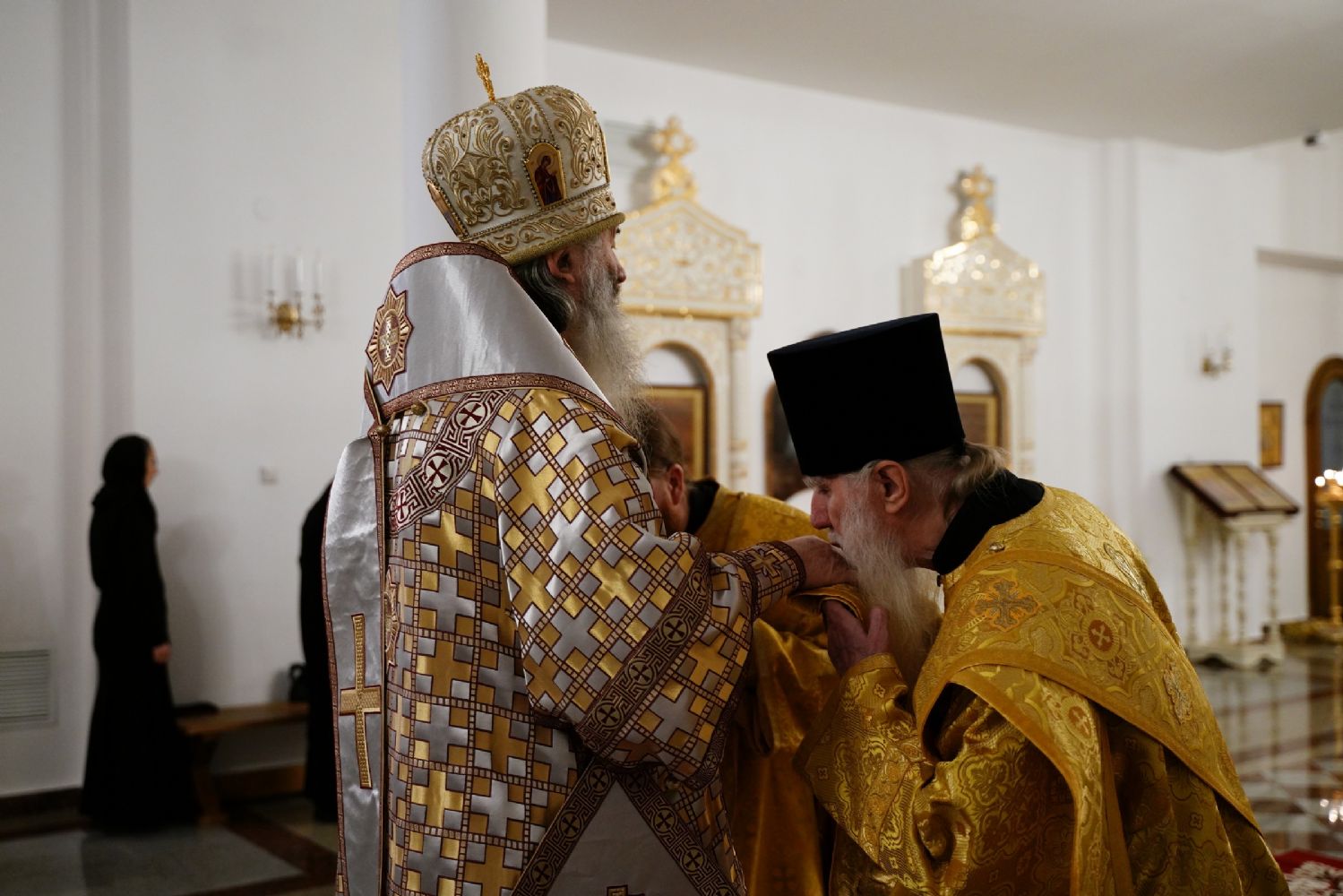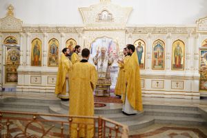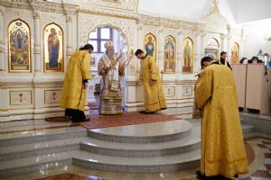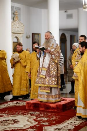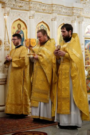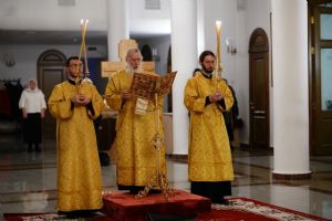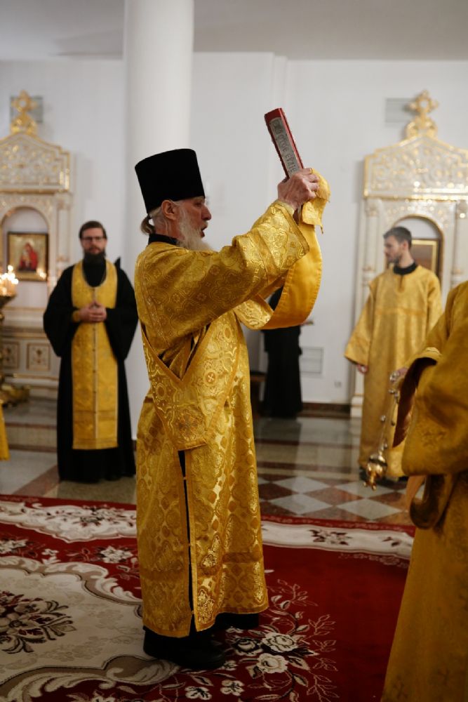 Владыке сослужили ключарь кафедрального собора протоиерей Сергий Поглазов, клирики собора иереи Никифор Захаров и Иоанн Милютин, диаконы Андрей Дружинин и Артемий Бобоч, а также протодиакон Михаил Козловский. Песнопения исполнял хор «Благовест» под управлением регента Татьяны Черновой.