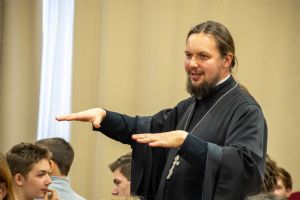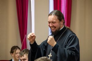Затем к собравшимся обратился руководитель епархиального отдела по делам молодежи иерей Никита Иванов. Батюшка рассказал, что семья - это школа любви, главная еë цель - союз мужчины и женщины, а не деторождение. Двое должны научиться этой любви и затем дарить еë другим. Любовь бывает не только между мальчиком и девочкой, но и в обществе, в коллективе. Любовь - это искусство: надо научиться любить самому; видеть свои ошибки, а не ошибки другого; любить - это большой труд...