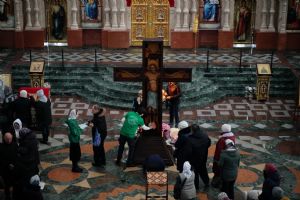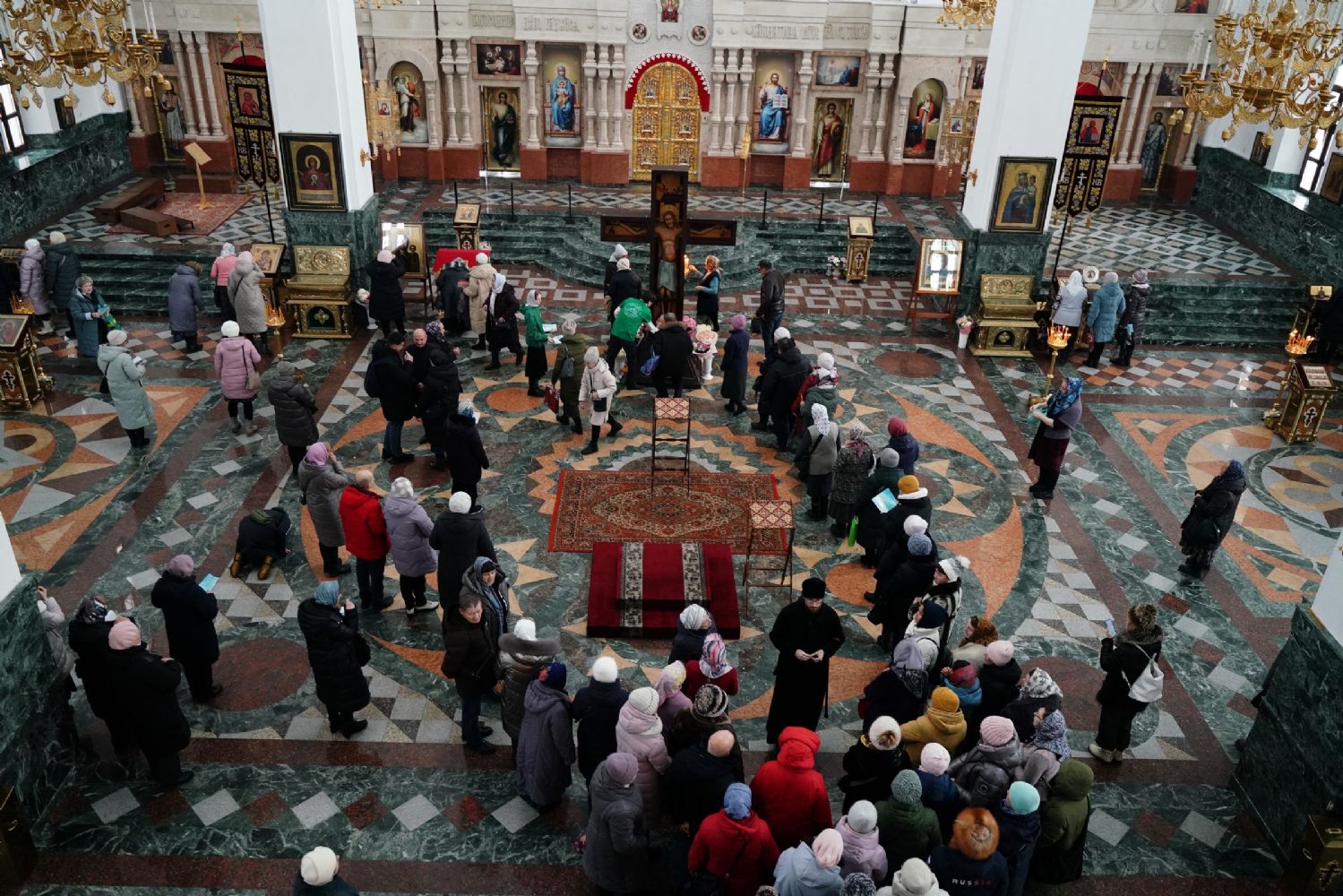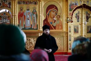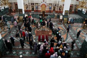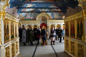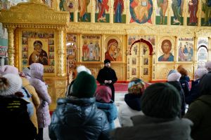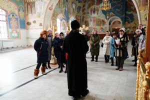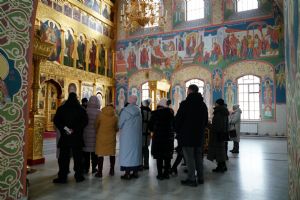 С утра для участников форума директор Паломнической службы «Елеон» чтец Григорий Михеев провел познавательную экскурсию по Троицкому храму Йошкар-Олы и Благовещенскому кафедральному собору, где сейчас находится копия чудотворного Годеновского Креста Господня. Экскурсоводы города поклонились святыне, после чего пообедали в соборной трапезной.