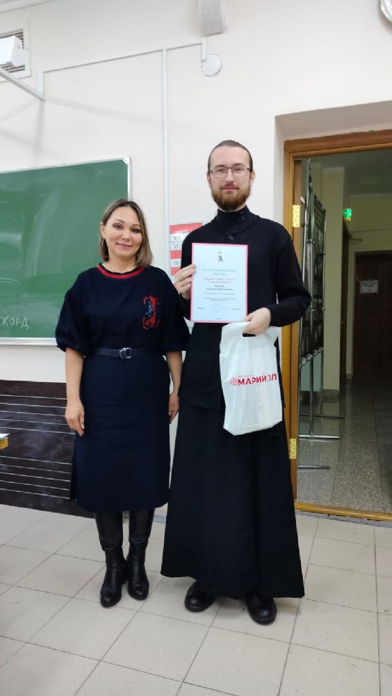 После молитвы в начале встречи к собравшимся обратилась заместитель министра спорта и туризма РМЭ Светлана Новоселова. В завершение своего слова Светлана Юрьевна вручила благодарственные письма за подписью министра спорта и туризма директору Паломнической службы «Елеон» чтецу Григорию Михееву и экскурсоводу Ларисе Лисак.