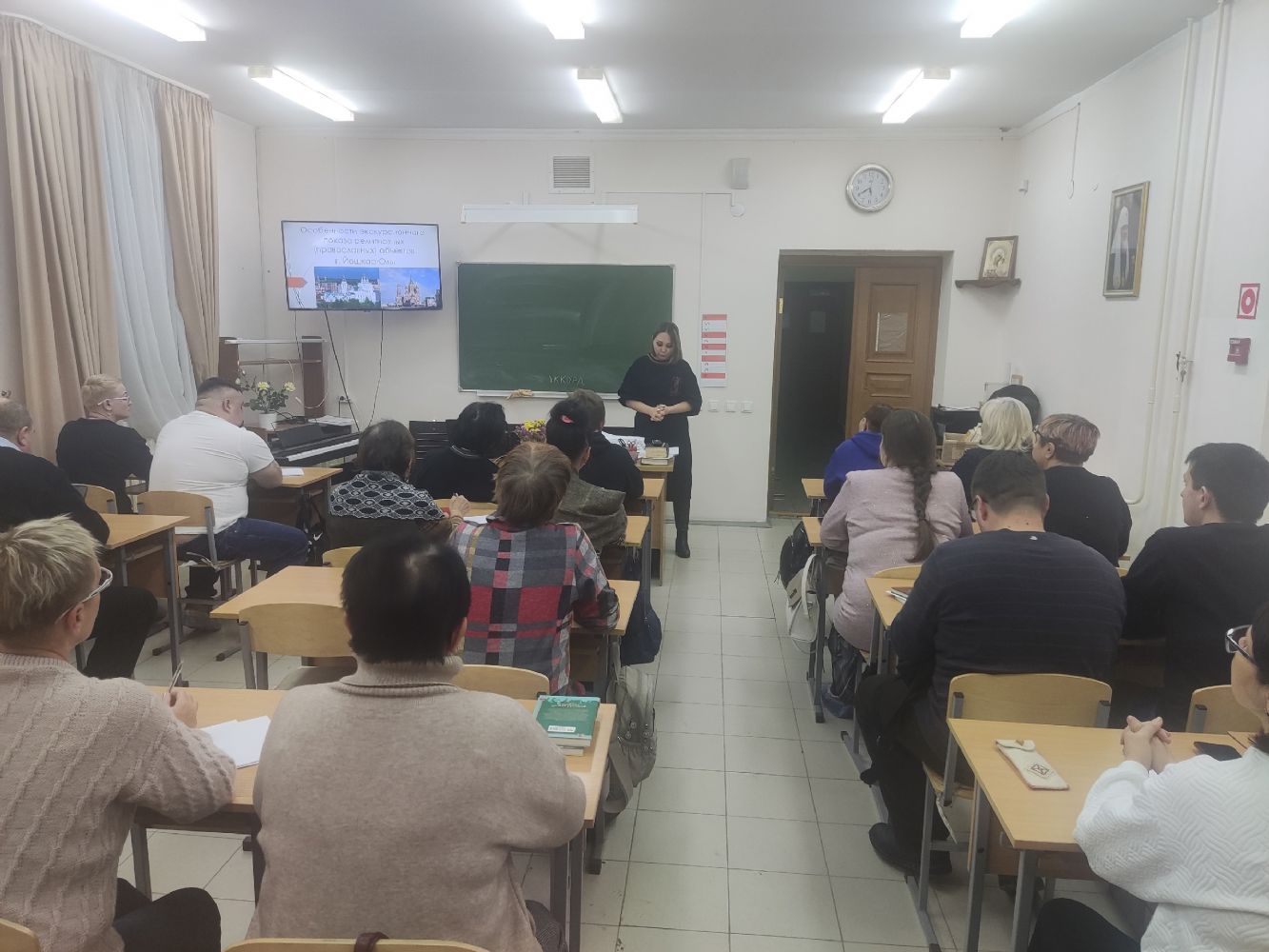 Вечером в Православном центре города состоялся круглый стол, посвященный актуальным вопросам проведения экскурсий по православным объектам показа. Участие в мероприятии приняли экскурсоводы Йошкар-Олы и Казани, а также слушатели курсов повышения квалификации при Епархиальном образовательном центре.