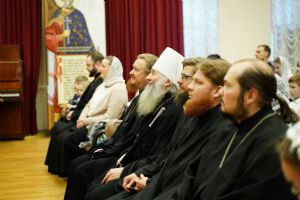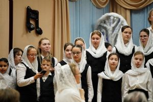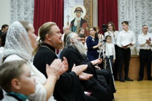 В первом отделении праздничного концерта прозвучали богослужебные песнопения и духовные канты в исполнении старших и младших певчих «Благовеста». Также ребята показали поучительный сказочный спектакль.