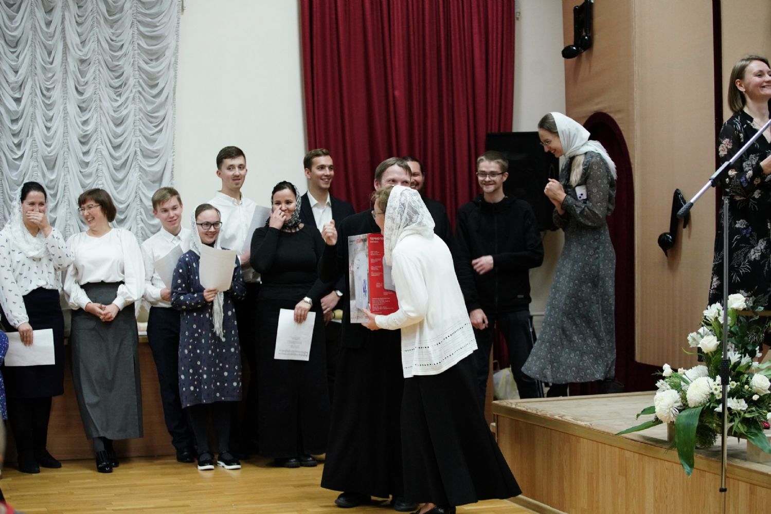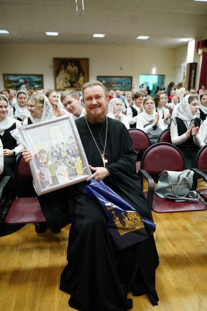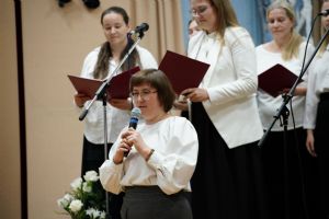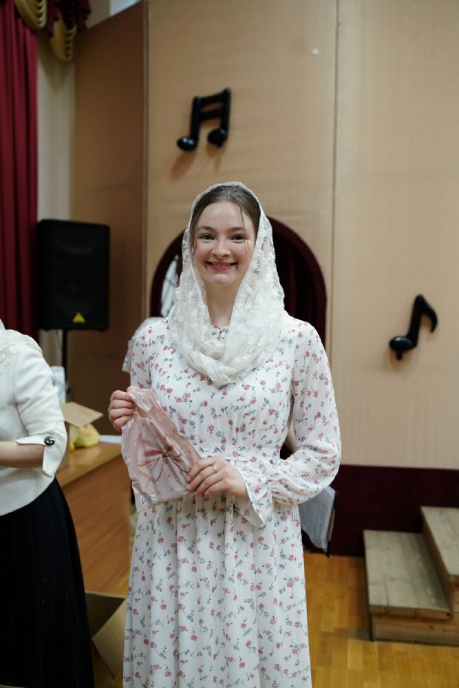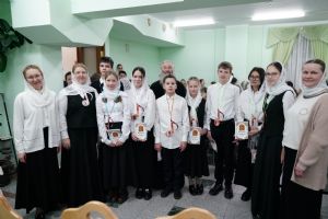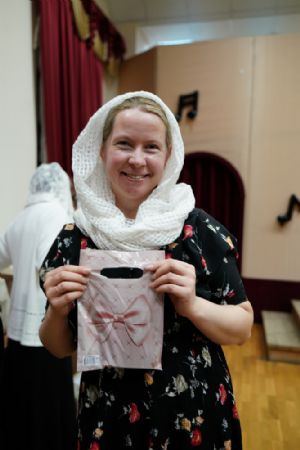 Регент хора Благовест Татьяна Чернова вручила подарки всем тем, кто помогает хористам на их духовном и творческом пути. Завершился праздник совместным исполнением гимна хора «Благовест».