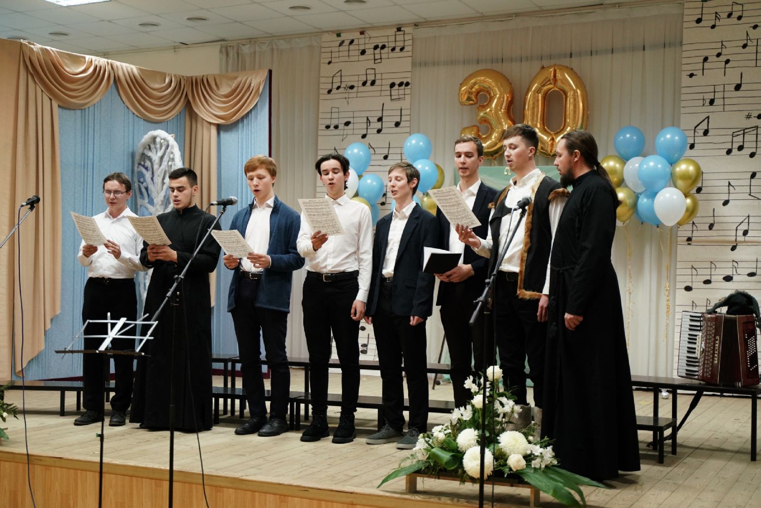 Праздник в честь 30-летия хора прошел в воскресенье, 26 ноября. В актовом зале Православного центра Йошкар-Олы собрались хористы, их родственники и друзья, гости. К хористам с назиданием обратился митрополит Йошкар-Олинский и Марийский Иоанн.
