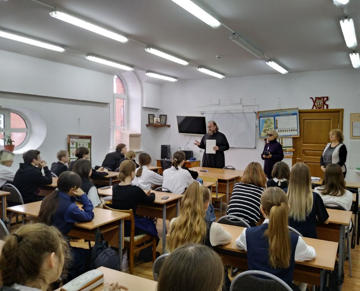 С приветственным словом к участникам олимпиады обратился директор Гимназии имени Сергия Радонежского протоиерей Евгений Сурков, который затем вручил Благодарственное письмо Оргкомитета Общероссийской олимпиады школьников «Основы православной культуры» Сарыниной Виктории Яковлевне, сотруднику отдела религиозного образования и катехизации Йошкар-Олинского благочиния, постоянному члену жюри Олимпиады.