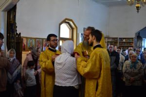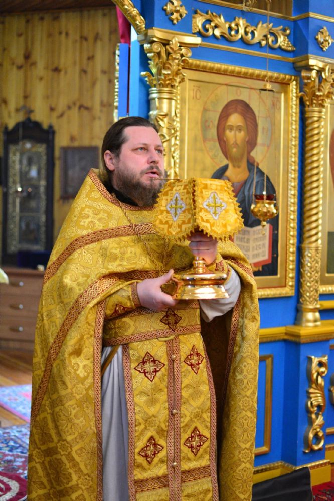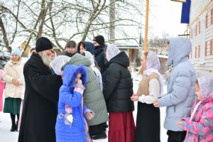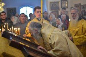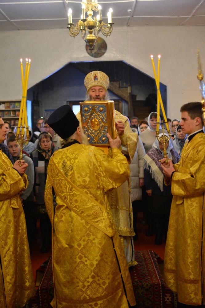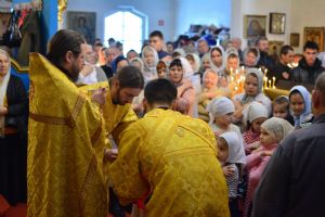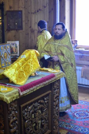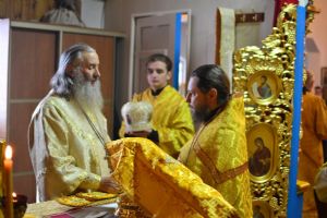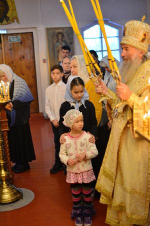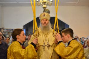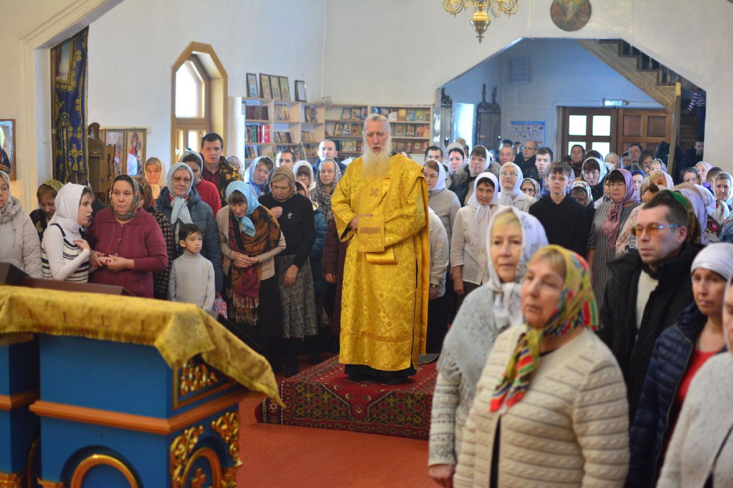 Архипастырю сослужили настоятель храма, благочинный Лугово-Марийского церковного округа протоиерей Алексий Никитин, клирик храма иерей Владимир Яшин и протодиакон Михаил Козловский. Пел хор храма, часть песнопений звучала на марийском языке.