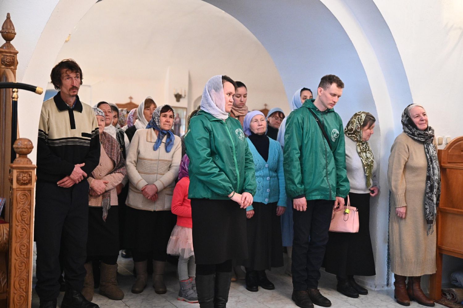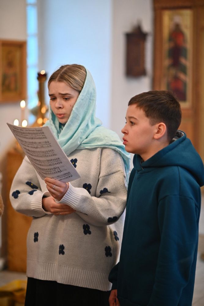 Архипастырю сослужили секретарь Йошкар-Олинского епархиального управления иеромонах Серафим (Пасанаев), клирик монастыря иерей Михаил Лежнин и протодиакон Михаил Козловский. Песнопения исполняли детско-юношеский хор «Благовест» под руководством регента Татьяны Черновой и хор Троицкого храма г. Йошкар-Олы под управлением Анны Ярошевич.
