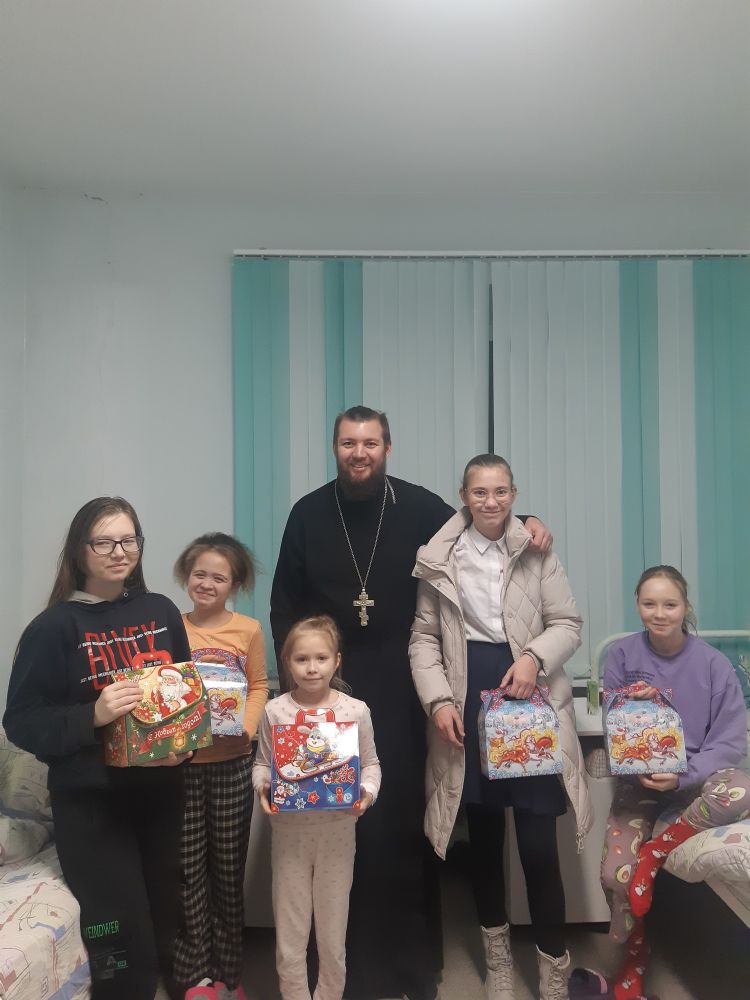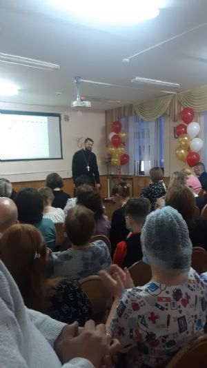 На празднике присутствовали и священники, окормляющие данную больницу – клирики храма Рождества Пресвятой Богородицы с. Семеновка иерей Павел Дурандин и иерей Сергий Асланов. Батюшки поздравили всех присутствующих, поблагодарили сотрудников за совместную работу, помолились за тех, кто сегодня лечится в отделении. В конце мероприятия деткам были вручены памятные подарки.