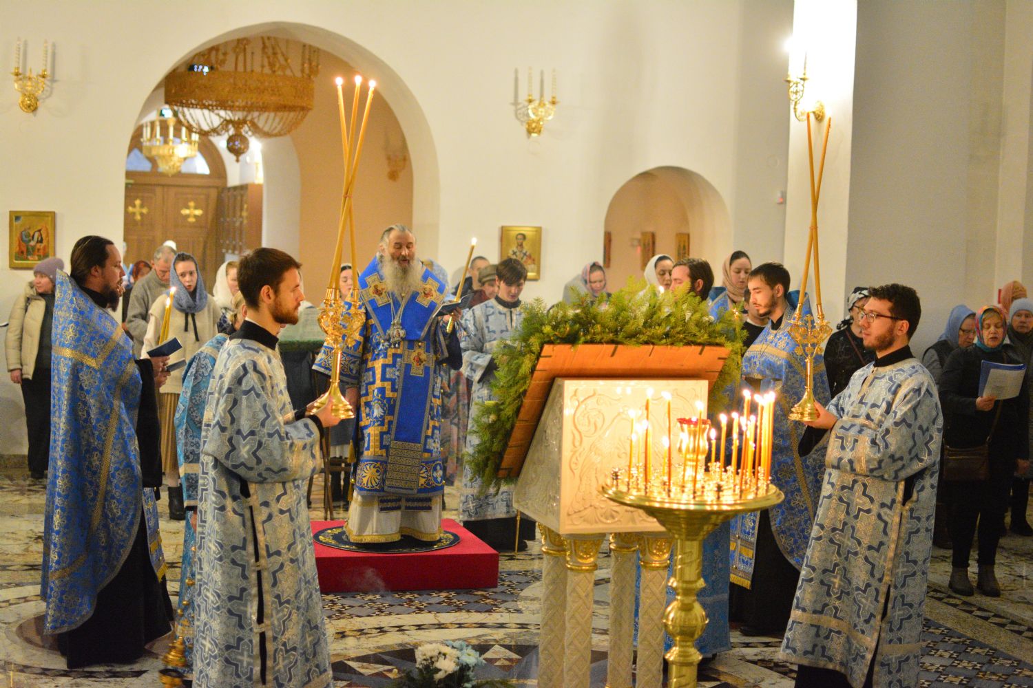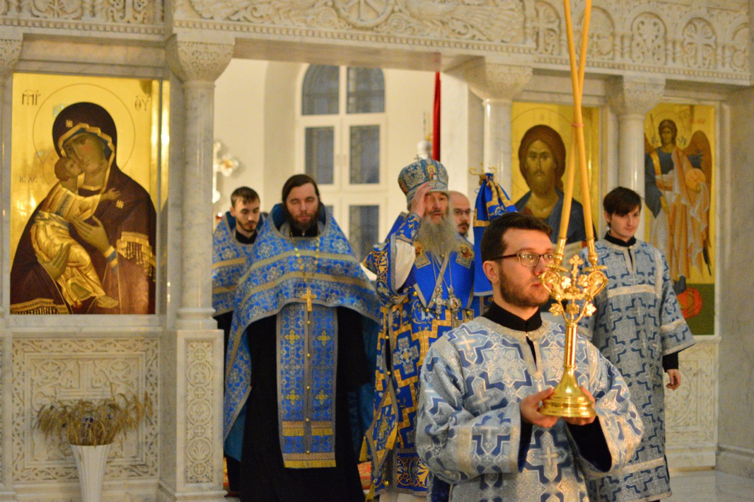 22 ноября вечером, в канун Недели 24-й по Пятидесятнице, дня памяти преподобного Матфея Яранского, митрополит Йошкар-Олинский и Марийский Иоанн возглавил всенощное бдение в Благовещенском кафедральном соборе.