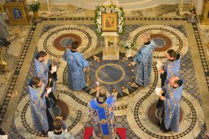 Владыке сослужили настоятель храма иерей Алексий Михеев, клирики храма иереи Алексий Кирюшкин, Игорь Коваль и Сергий Пуртов, диакон Олег Михайлов, а также протодиакон Михаил Козловский. Песнопения исполнял хор храма под управлением Надежды Пуртовой.