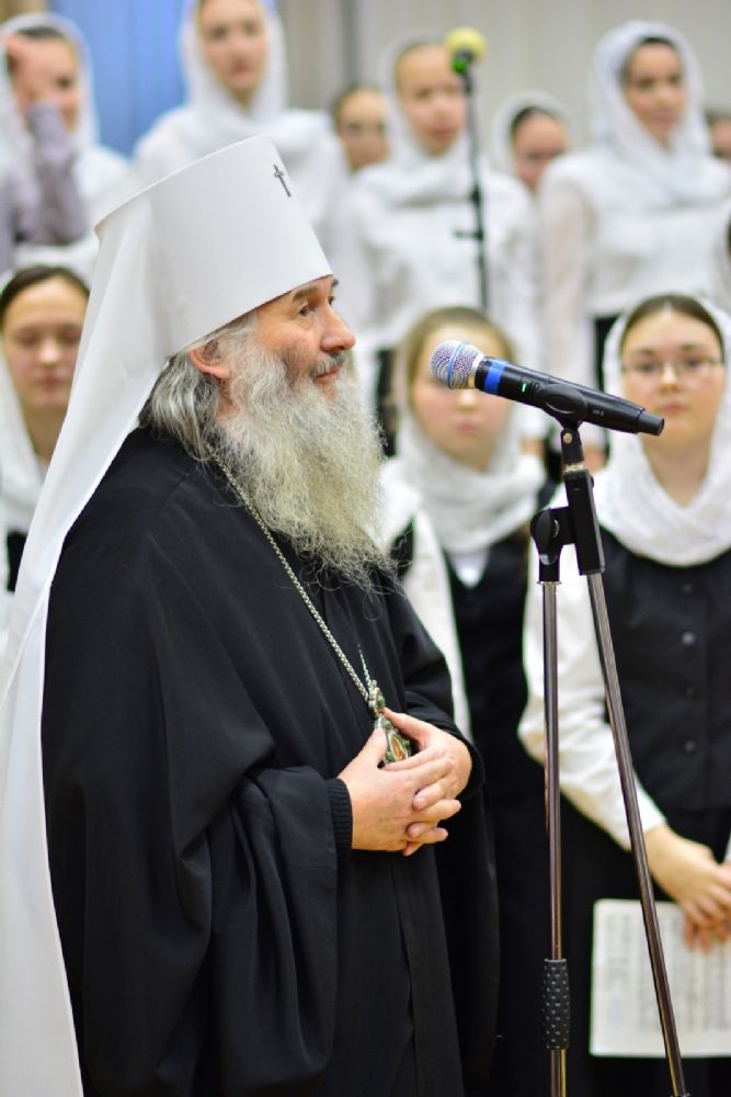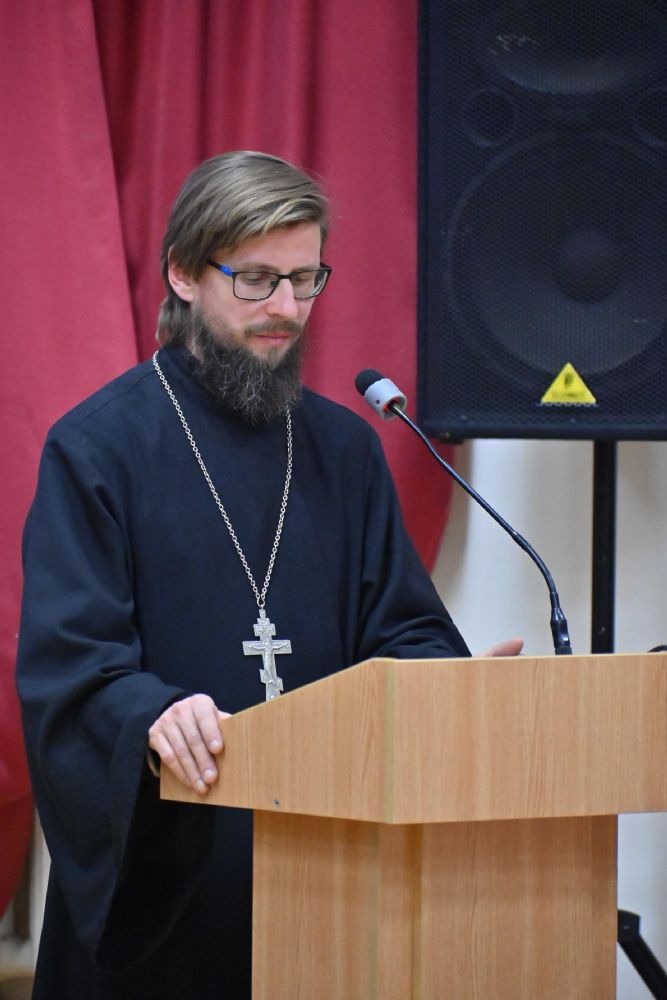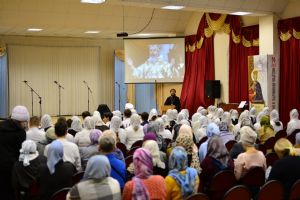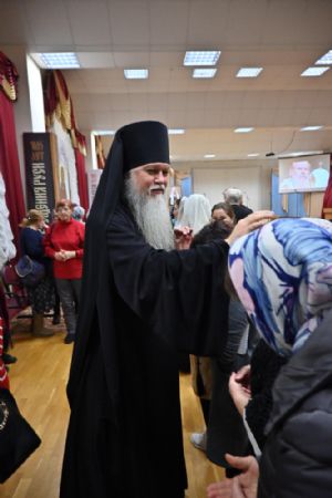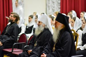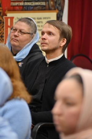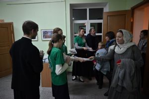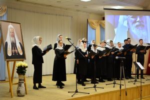 В актовом зале собрались священнослужители, прихожане храмов, работники епархии, сестры милосердия, православные добровольцы. Почтить память Патриарха Алексия II пришли митрополит Йошкар-Олинский и Марийский Иоанн и епископ Волжский и Сернурский Феофан.