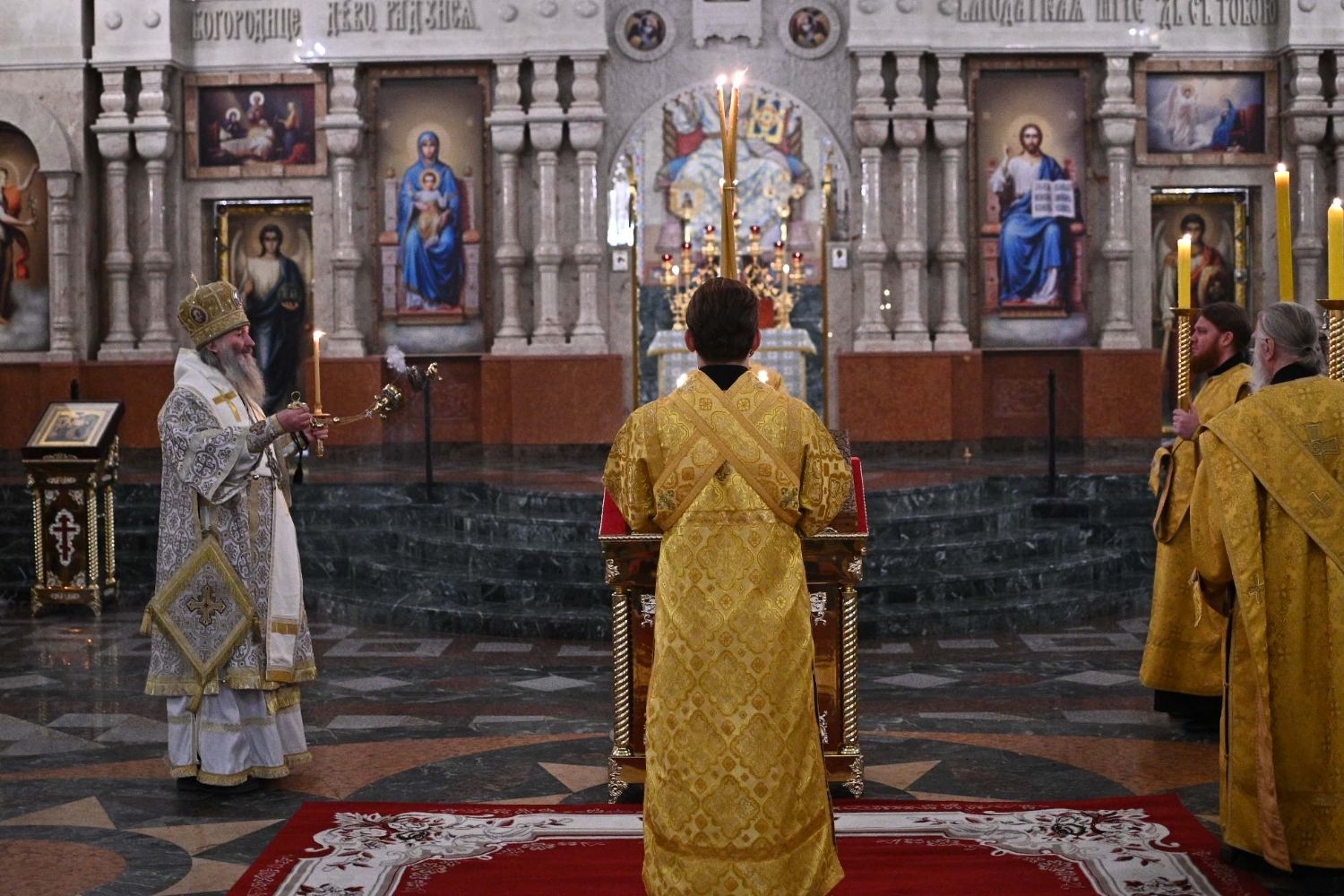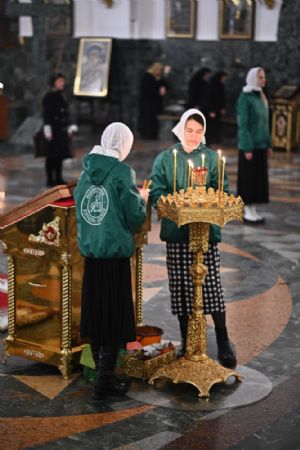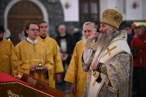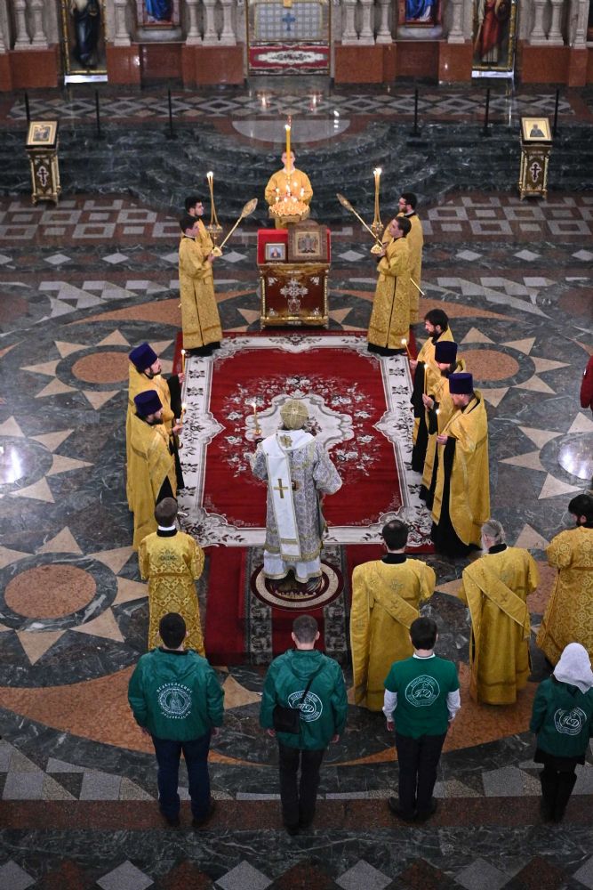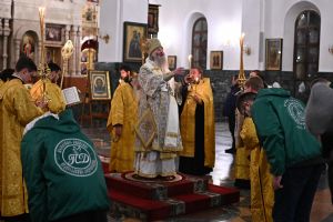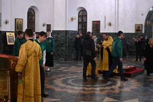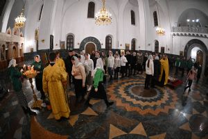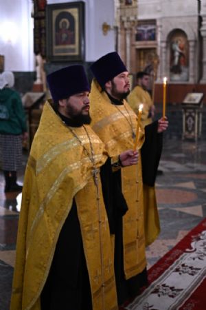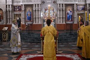 Его Высокопреосвященству сослужили ключарь кафедрального собора протоиерей Сергий Поглазов, клирики собора иереи Никифор Захаров, Евгений Самойлов, Александр Староверов и Иоанн Милютин, диаконы Андрей Дружинин и Артемий Бобоч, а также протодиакон Михаил Козловский. Пел детско-юношеский хор «Благовест» под управлением Татьяны Черновой. Часть песнопений в алтаре звучала в исполнении хора священства под руководством иерея Евгения Самойлова.