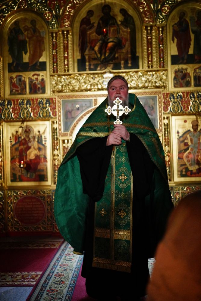 Владыке сослужили настоятель храма протоиерей Александр Бачурин, полковой священник иерей Георгий Колотов, клирики храма протоиерей Василий Лихачев, иереи Константин Домрачев, Виктор Умрихин, Николай Бабич, диакон Алексий Ершов, а также протодиакон Михаил Козловский.