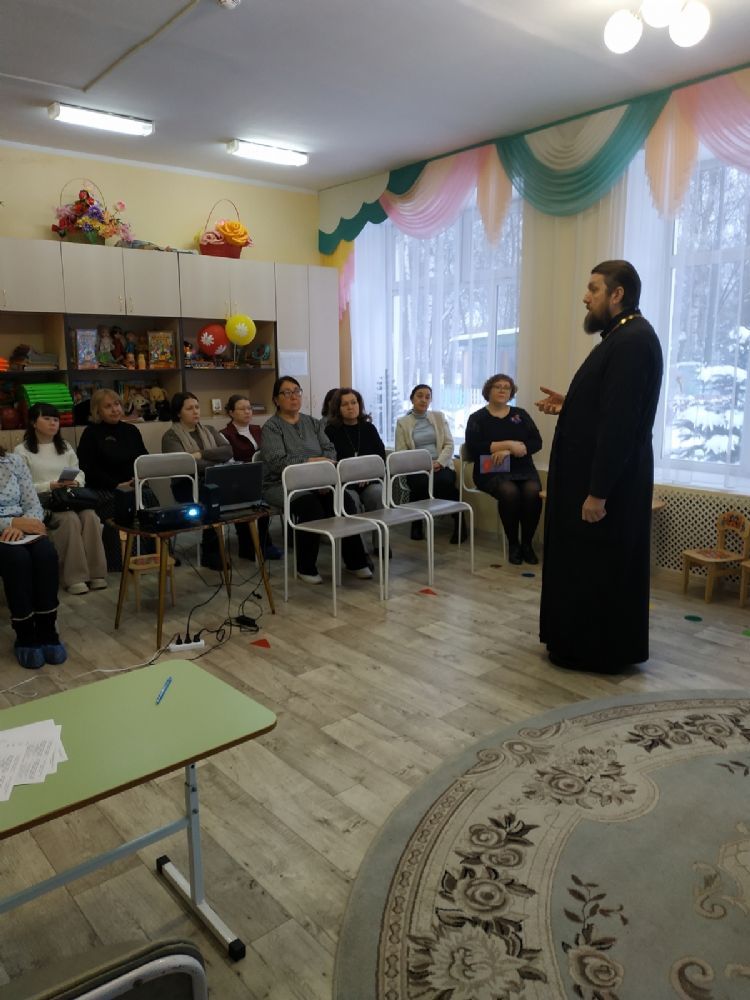 В начале семинара прозвучали приветственные слова Манцеровой Надежды Григорьевны, ведущего специалиста отдела дошкольного образования Управления образования администрации городского округа «Город Йошкар-Ола» и руководителя отдела религиозного образования и катехизации Йошкар-Олинской и Марийской епархии протоиерея Андрея Норкина.
