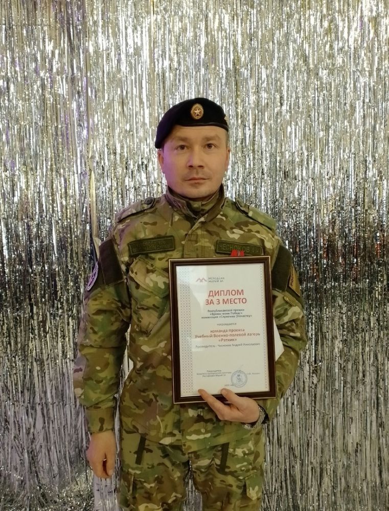 Также в рамках форума прошла церемония награждения победителей Республиканской премии «Время твоих побед!» Призером в направлении «Служение Отечеству» стала практика «Военно-полевой лагерь «Ратник», которая реализуется более 10 лет на территории Килемарского района. Награду из рук председателя Комитета молодежной политики Республики Марий Эл Станислава Игошина получил автор инициативы – руководитель ВПКО «Наследники» Андрей Чесноков.