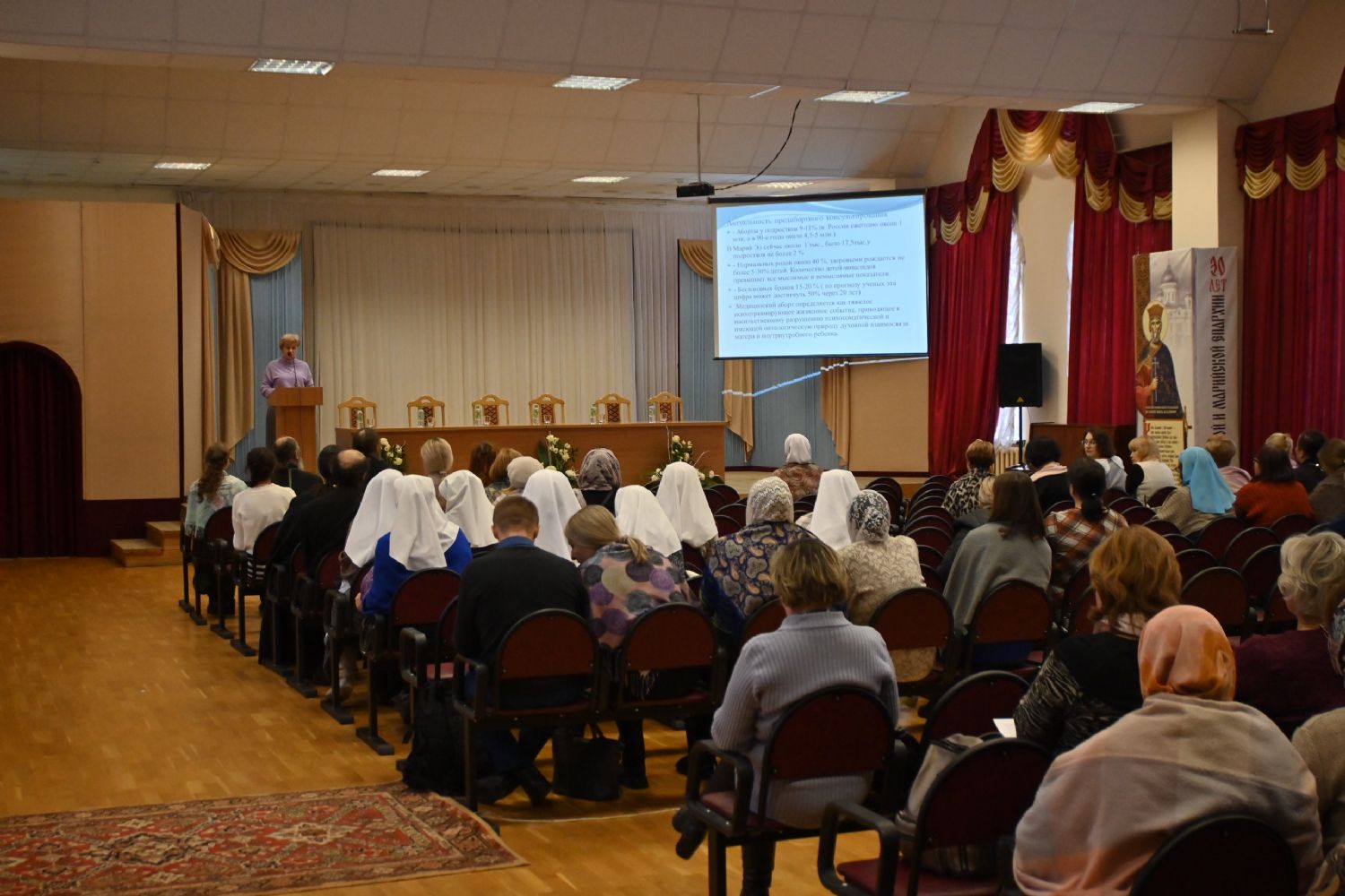 На пленарное заседание конференции в актовом зале Православного центра собрались представители Марийского отделения Всемирного Русского Народного Собора, Марийской митрополии, Минздрава РМЭ, Центра защиты материнства «Умиление» г. Казань, работники медицинских организаций, специалисты по работе с женщинами в ситуации репродуктивного выбора, активисты регионального отделения Всероссийского общественного движения «Волонтеры-Медики» и молодежного движения «Православные добровольцы Марий Эл», сотрудники Комитета молодежной политики РМЭ, Центра общественного здоровья и медицинской профилактики, образовательных организаций высшего и среднего профессионального образования.