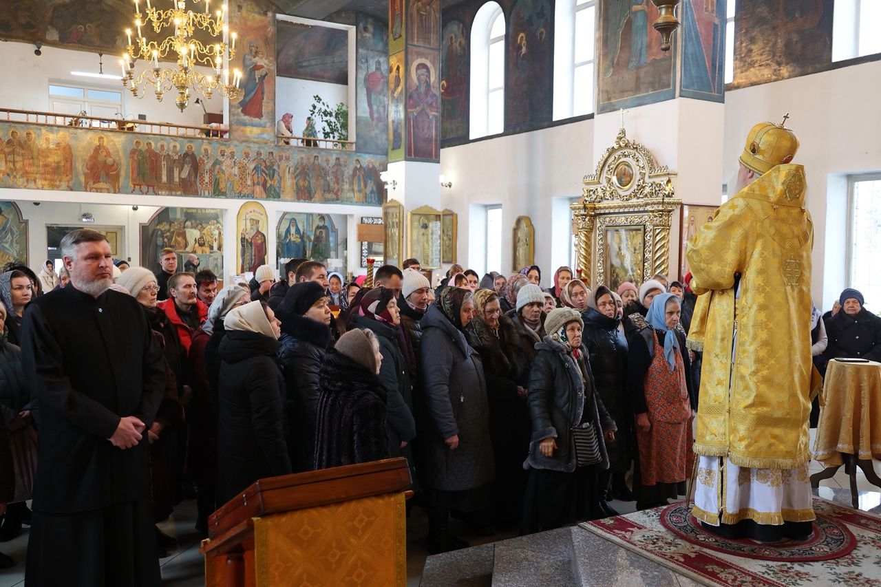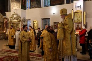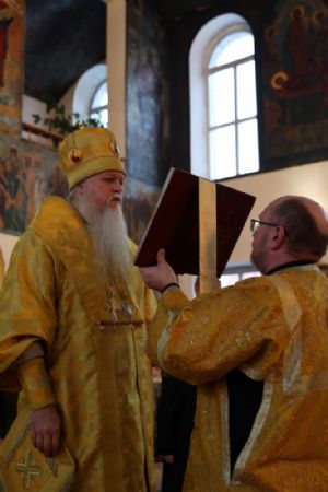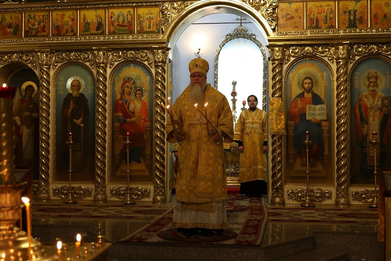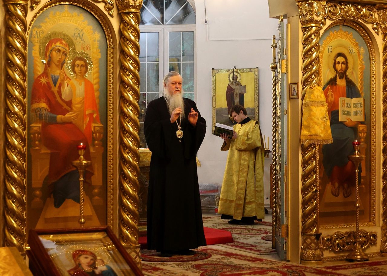 Его Преосвященству сослужили клирики собора, песнопения исполнял архиерейский хор.