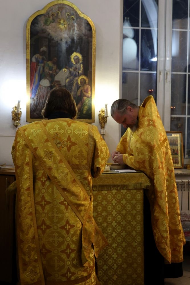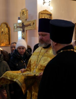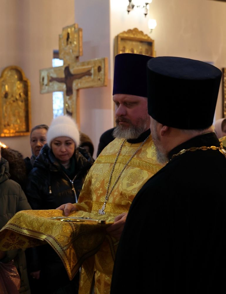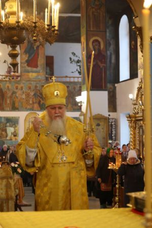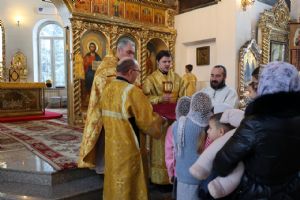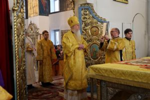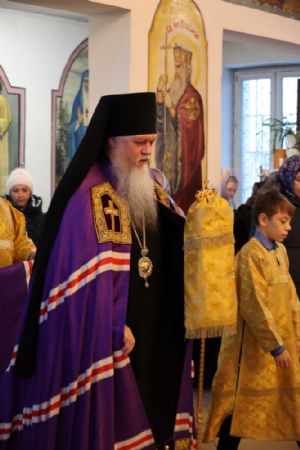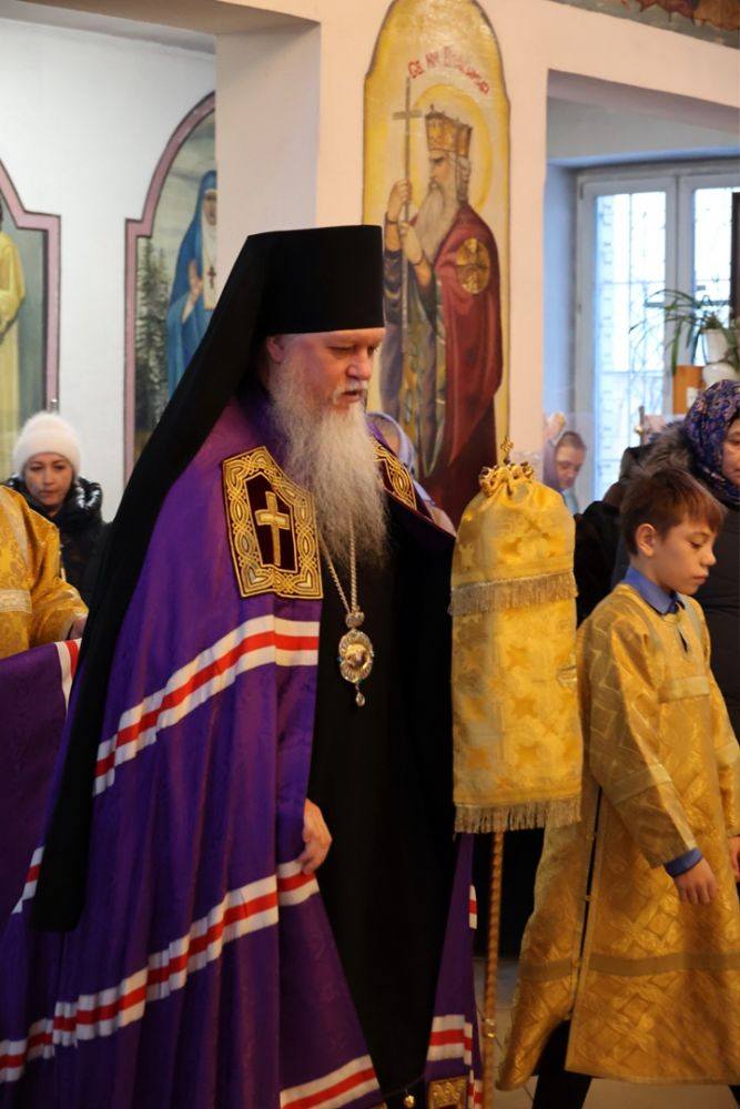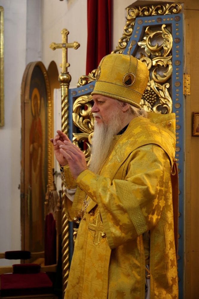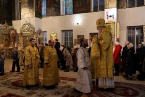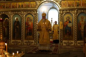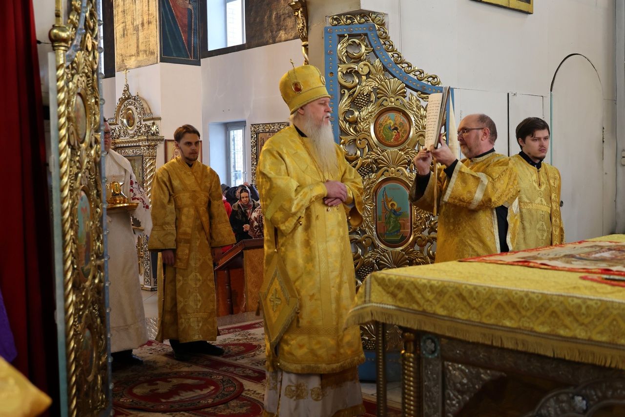 Его Преосвященству сослужили клирики собора, песнопения исполнял архиерейский хор.