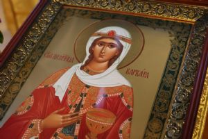 По окончании Литургии священнослужители совершили славление перед иконой великомученицы Варвары, после чего владыка Феофан обратился к верующим с архипастырским словом, рассказав о житии празднуемой святой.