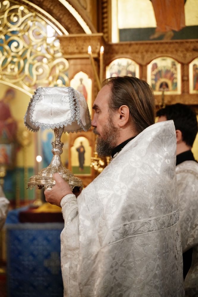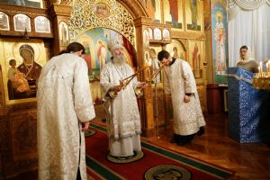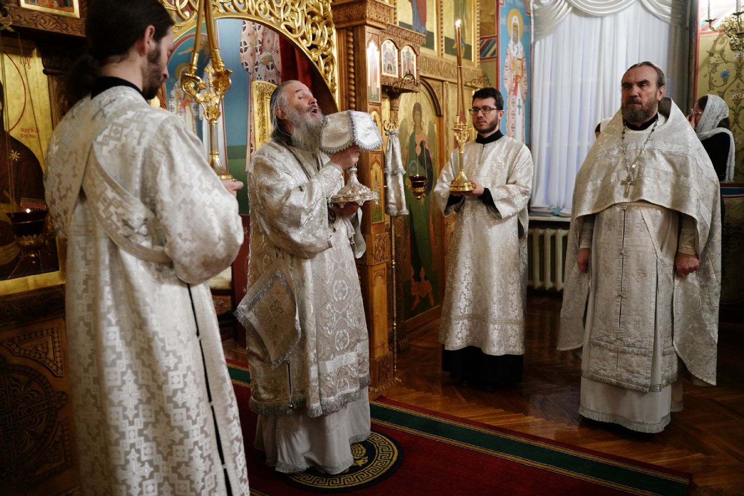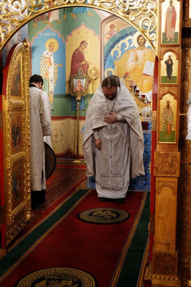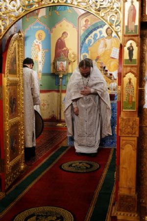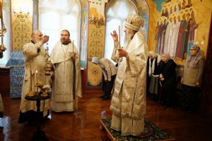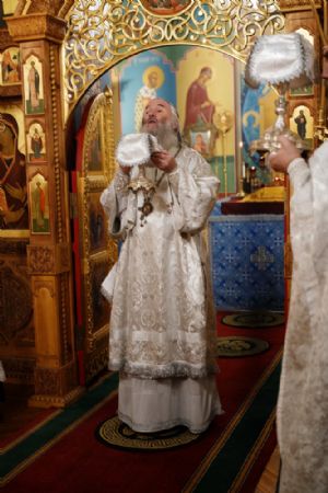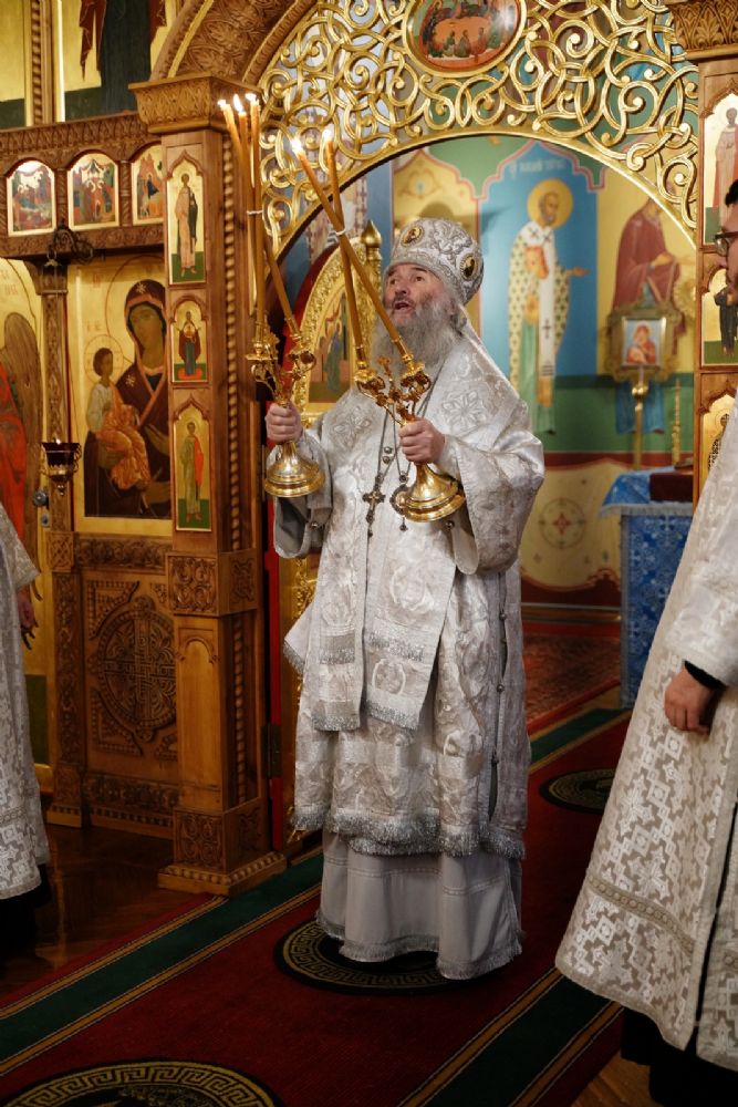 Владыке сослужили секретарь Йошкар-Олинского епархиального управления иеромонах Серафим (Пасанаев) и протодиакон Михаил Козловский. Песнопения исполнял малый состав хора «Благовест» под управлением регента Татьяны Черновой.