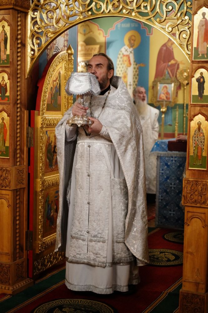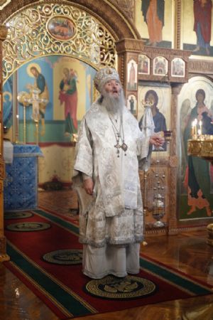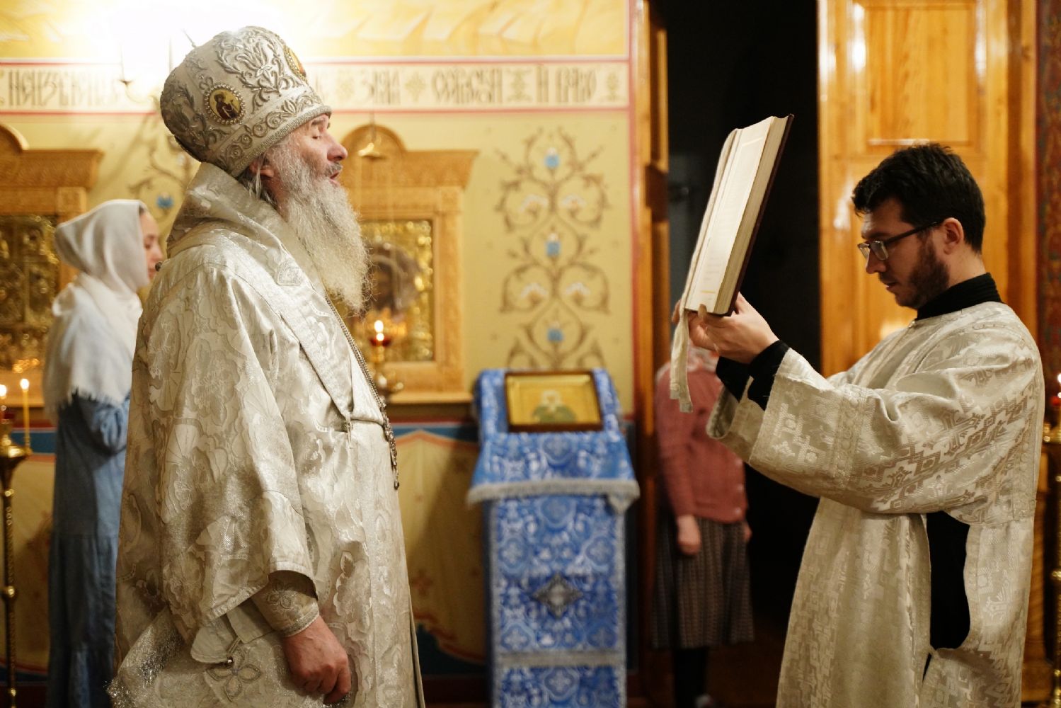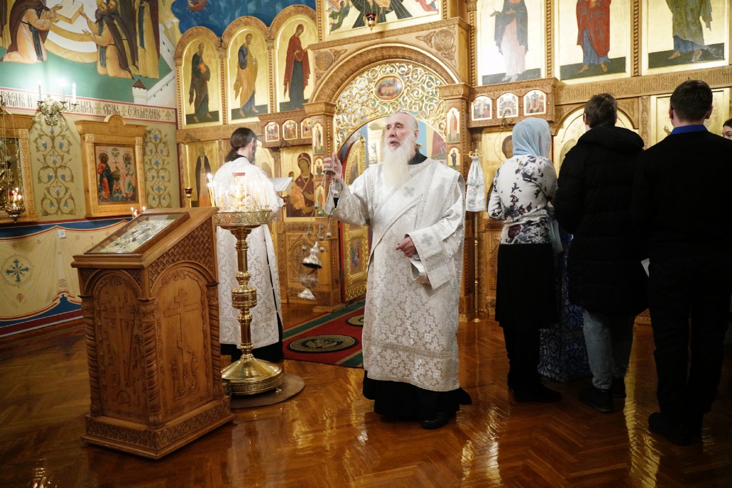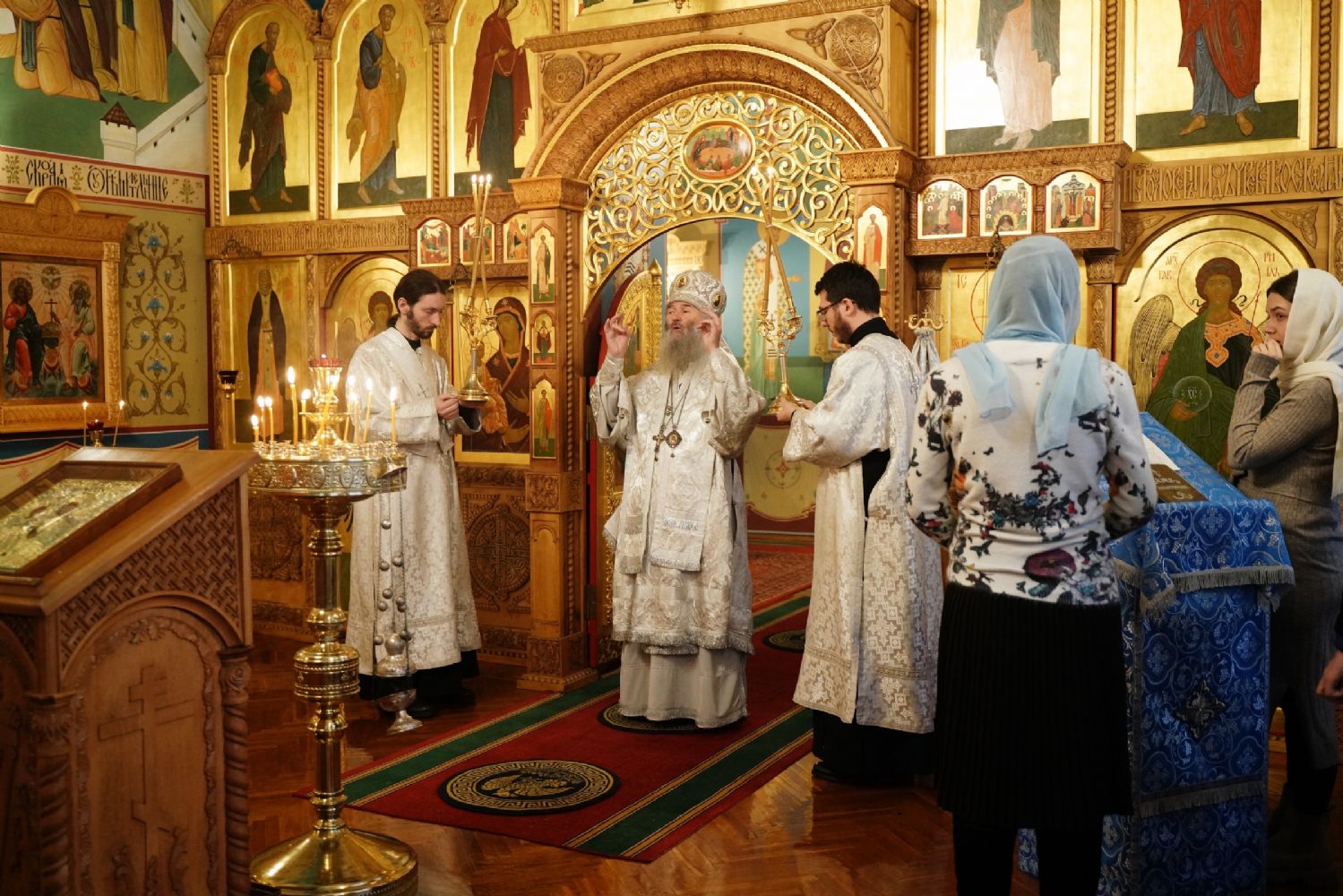 Владыке сослужили секретарь Йошкар-Олинского епархиального управления иеромонах Серафим (Пасанаев) и протодиакон Михаил Козловский. Песнопения исполнял малый состав хора «Благовест» под управлением регента Татьяны Черновой.