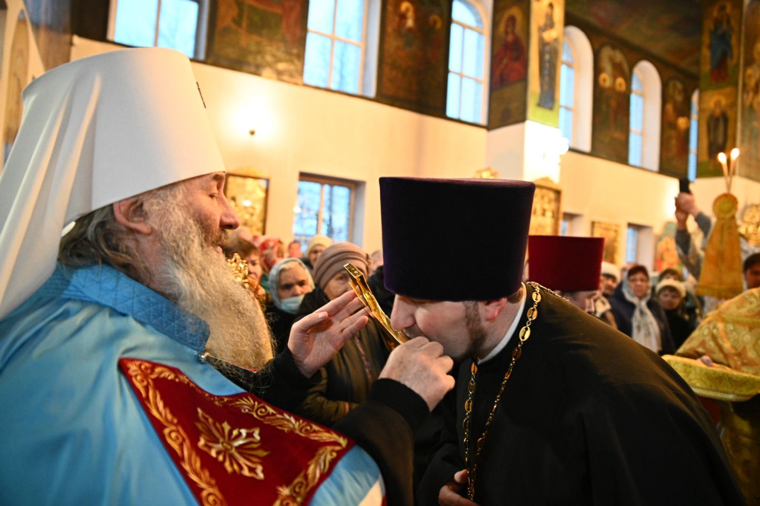 Праздничную Божественную литургию возглавили два архиерея – митрополит Йошкар-Олинский и Марийский Иоанн и епископ Волжский и Сернурский Феофан. Архипастырям сослужило духовенство Волжской епархии и клирик Йошкар-Олинской епархии протодиакон Михаил Козловский.